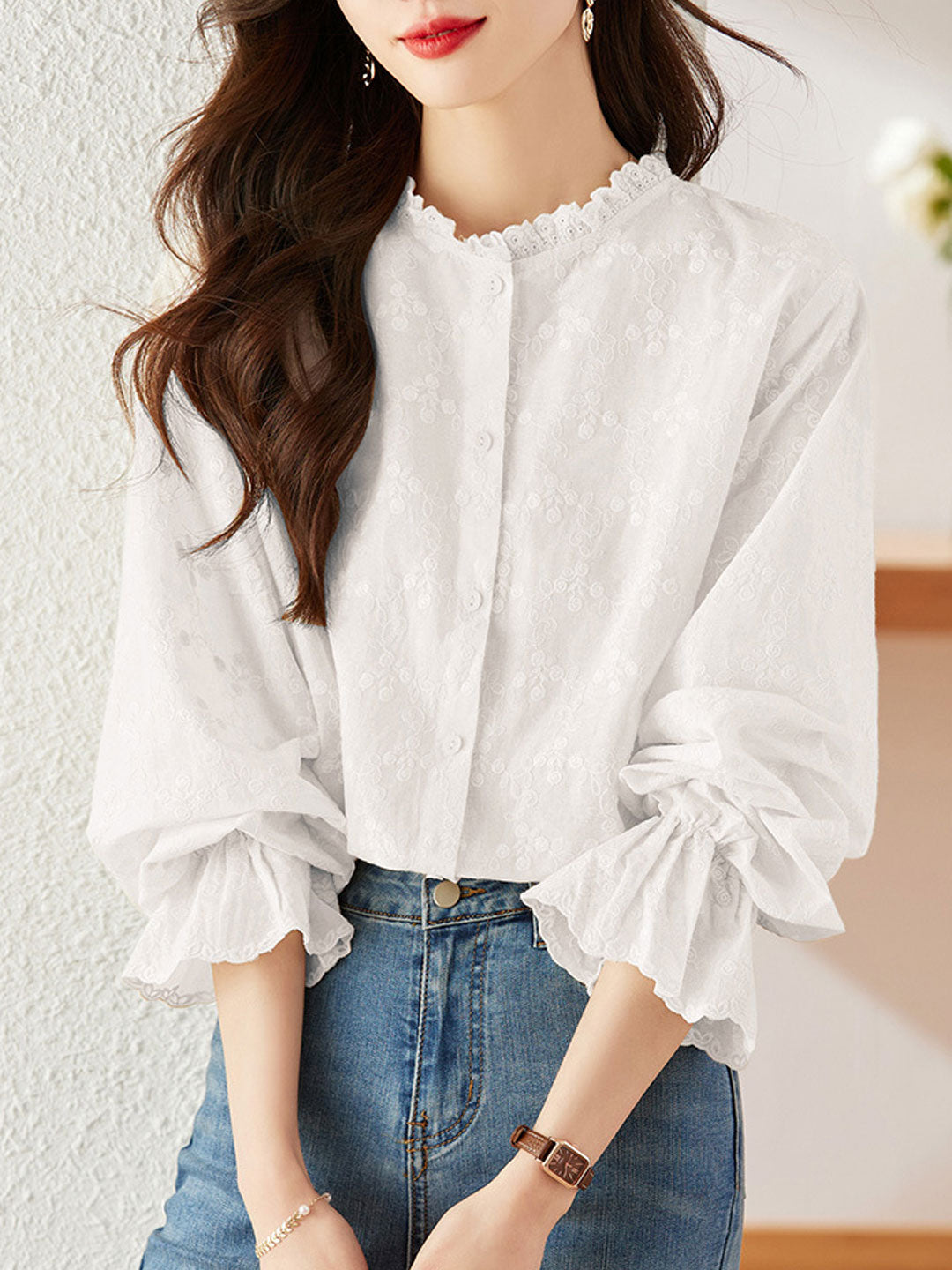 Molly Retro Flare Sleeve Lace Embroidered Shirt
