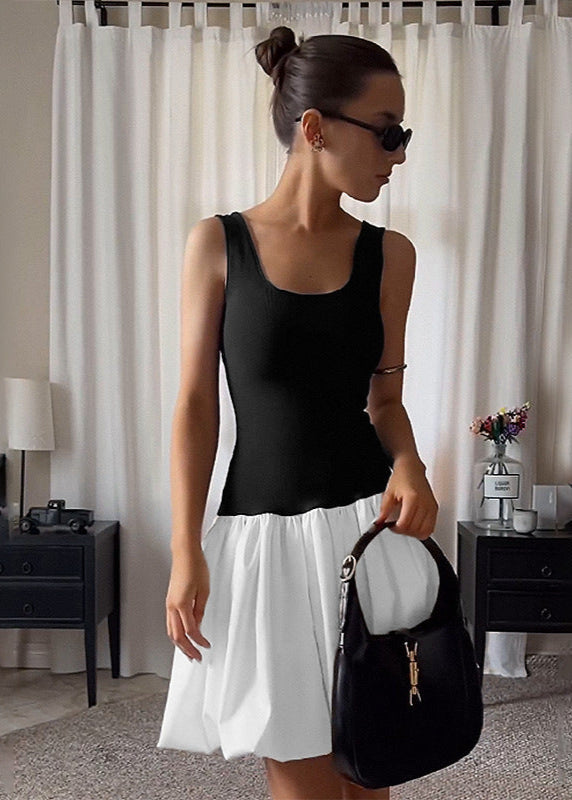 Monroe - Contrast Two-Tone Mini Dress delivers a modern take on classic elegance with its striking black-and-white color-block design. The fitted ribbed bodice accentuates the waist, seamlessly transitioning into a voluminous, structured skirt for a chic and playful silhouette. Designed for both comfort and style, this dress is perfect for brunch dates, cocktail evenings, or any occasion where effortless sophistication is key.