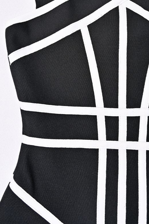 Colour-block, Crossover Neckline, Back Hem Split, Shoulder-baring, Sculpting Bandage Bodice, Midi Length.