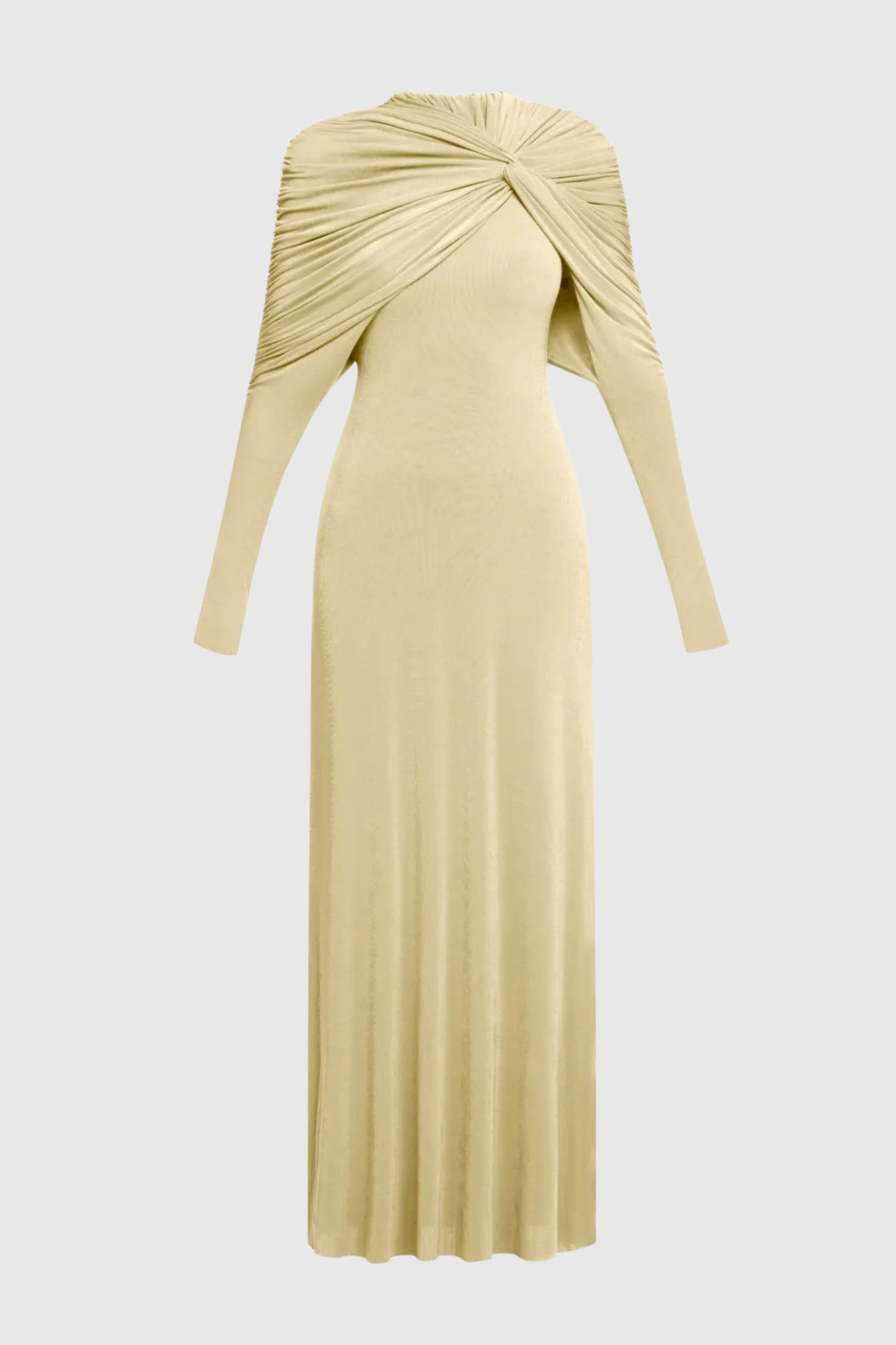 Natosha Ruched Knot Cape Maxi Dress - Yellow