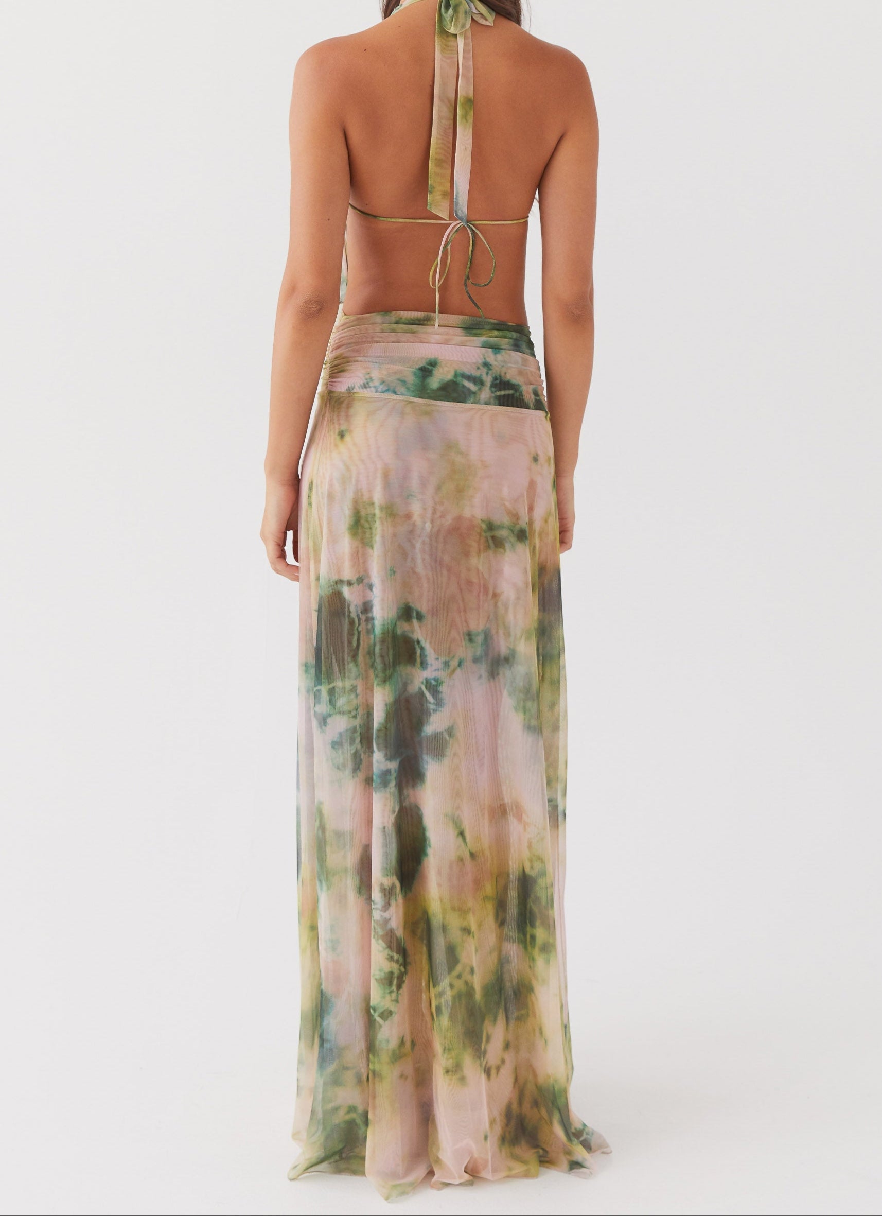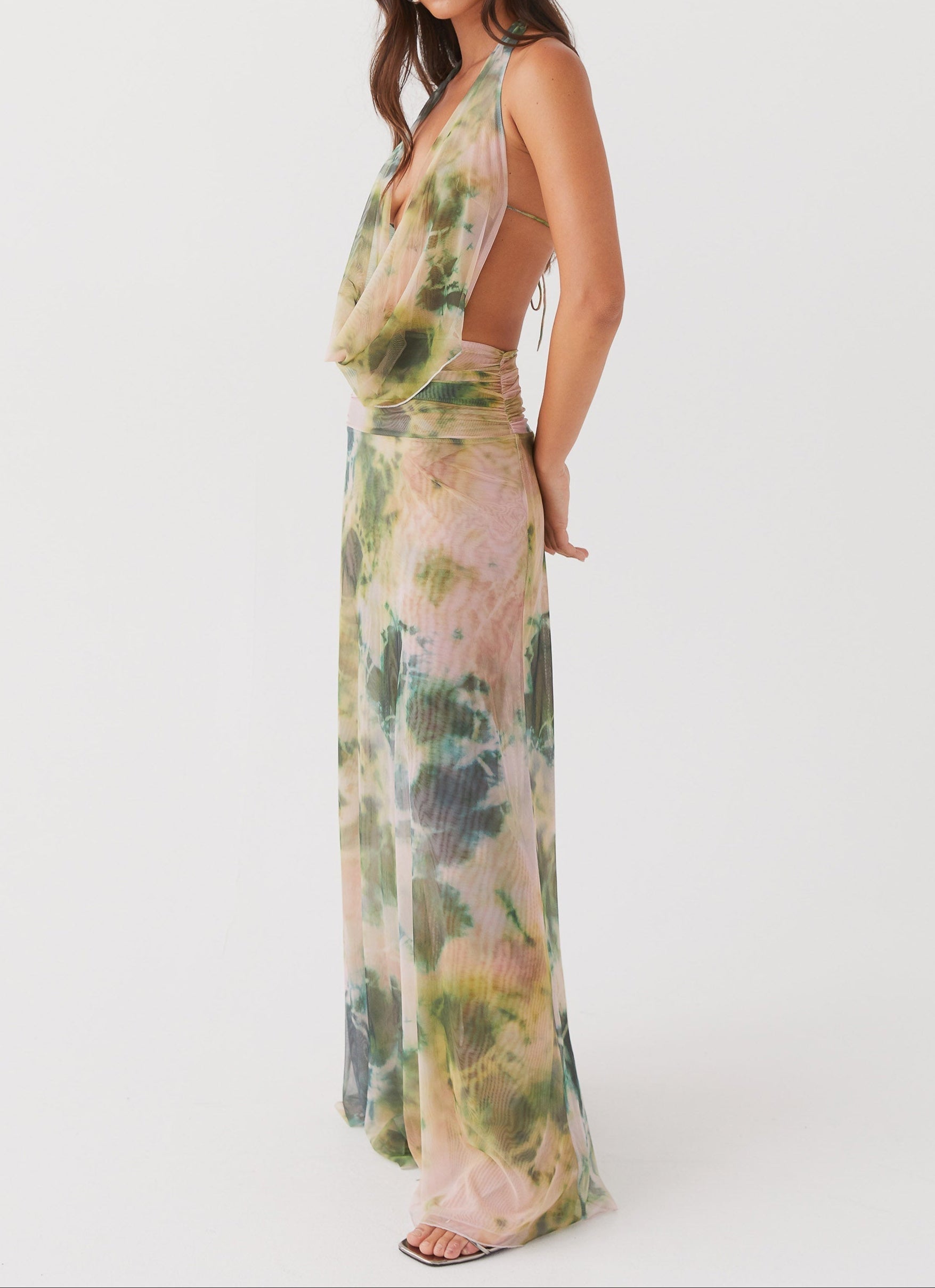 Turn heads in this stunning mesh maxi dress, designed to capture attention with its bold tie-dye print and alluring open-back silhouette. Perfect for summer nights out, festivals, or special occasions, this dress blends daring style with effortless glamour.