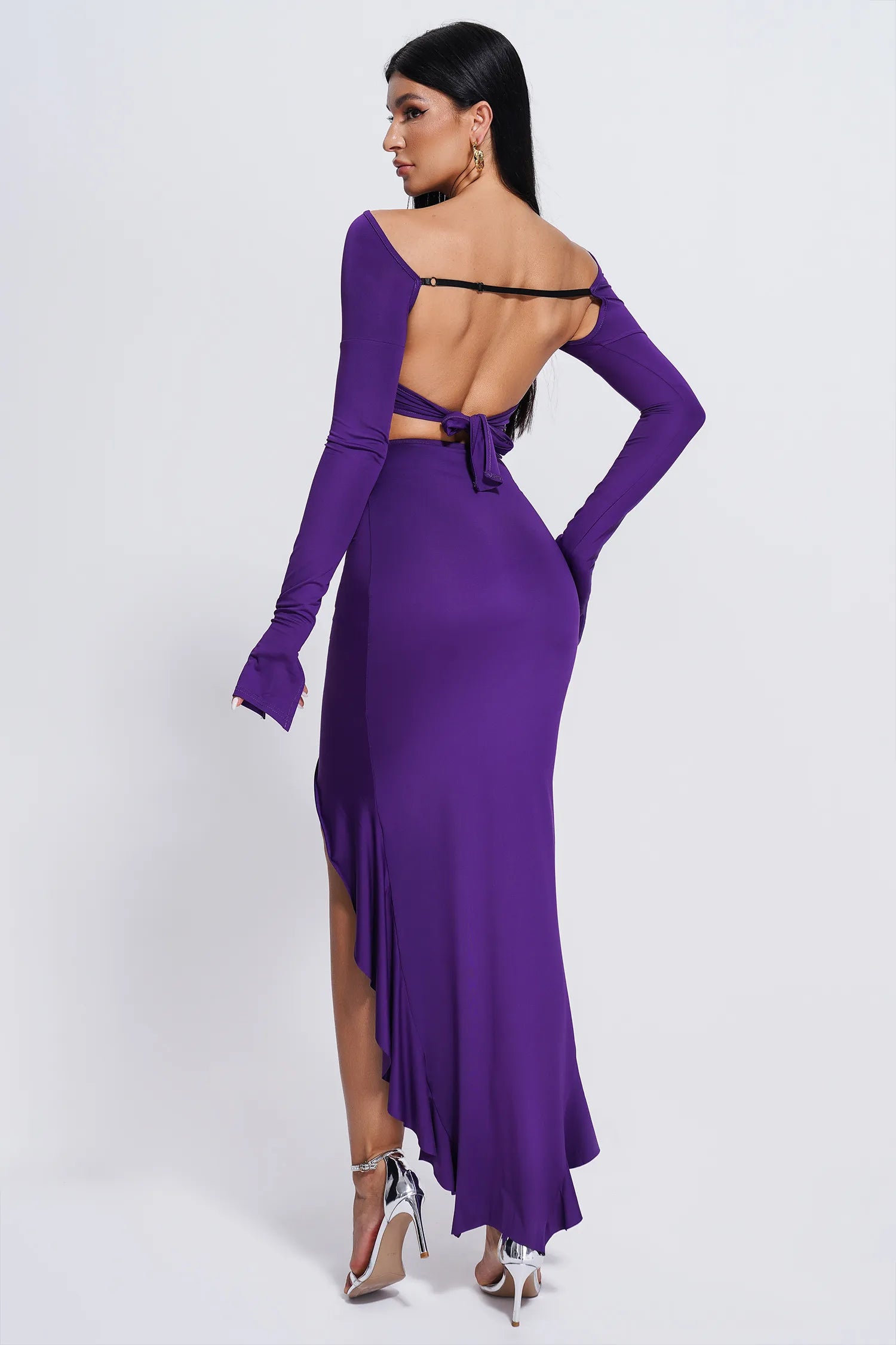 Nina Purple Long Sleeve Top and Purple Silt Skirt Set