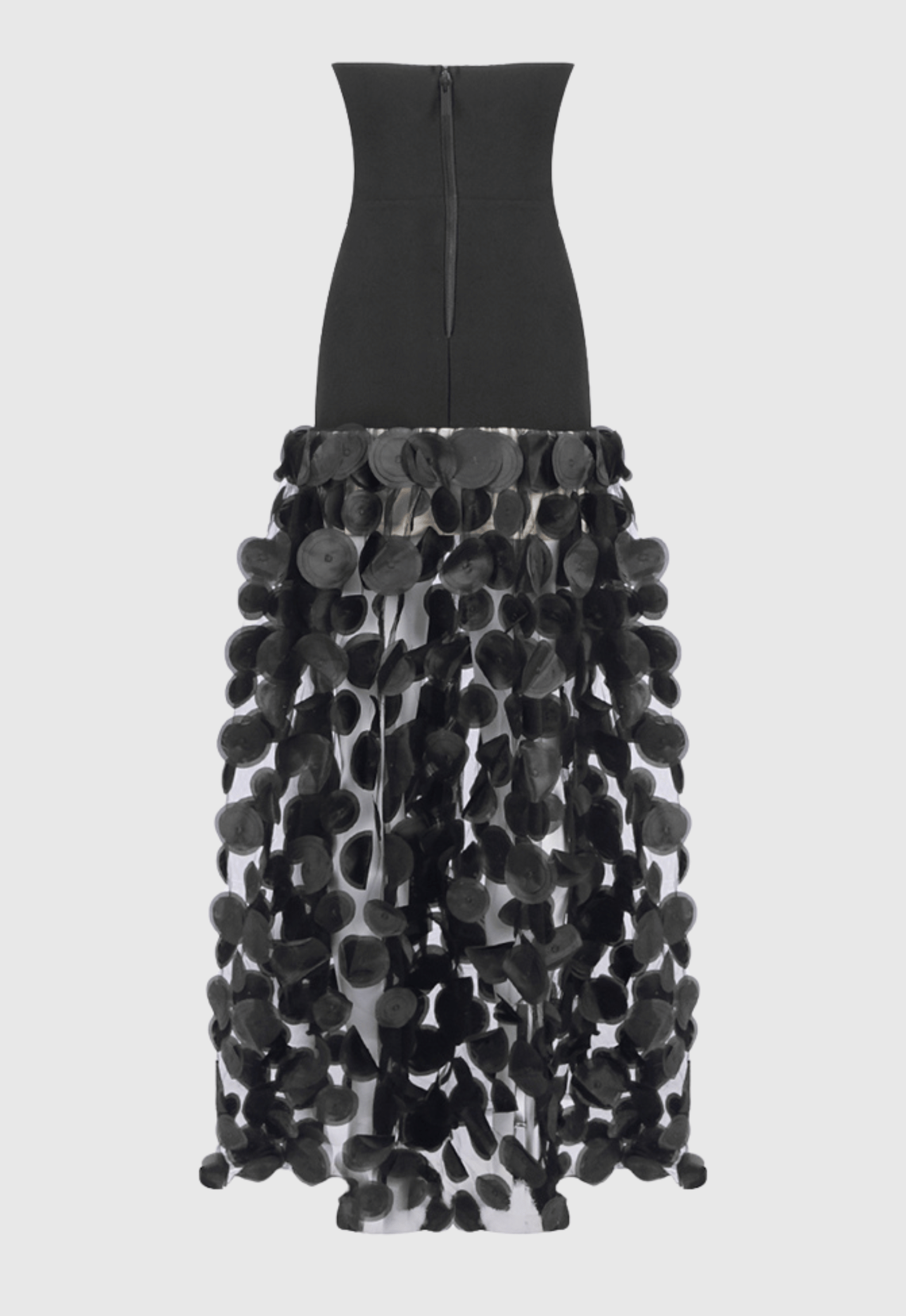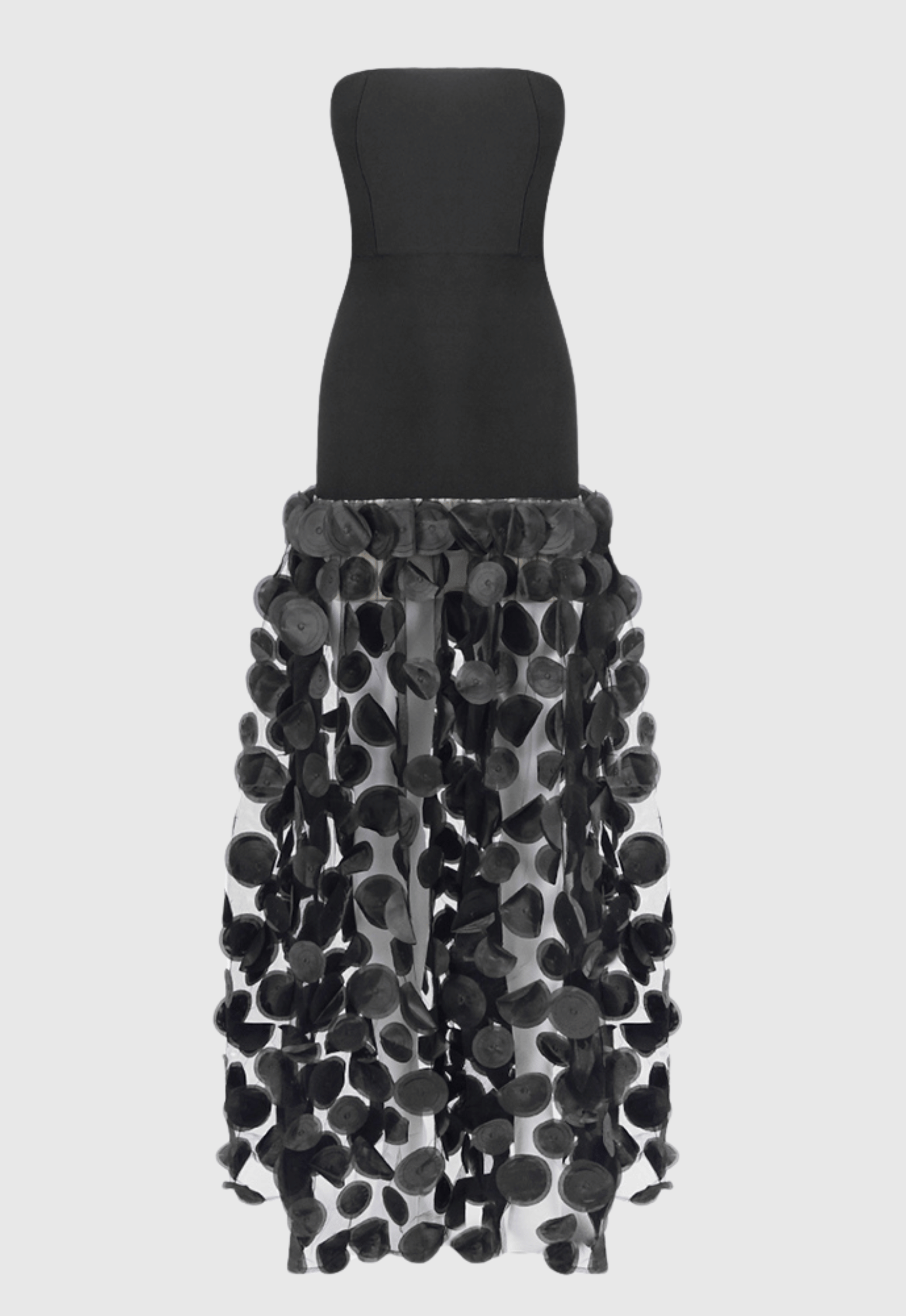 Nodin Strapless Dot Mesh Maxi Dress - Black