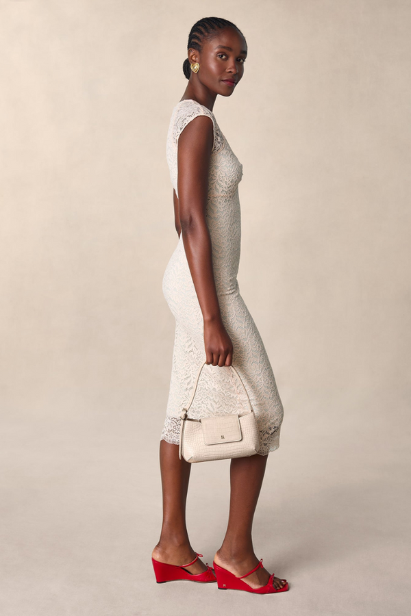 Nora Floral Lace Bow Midi Dress