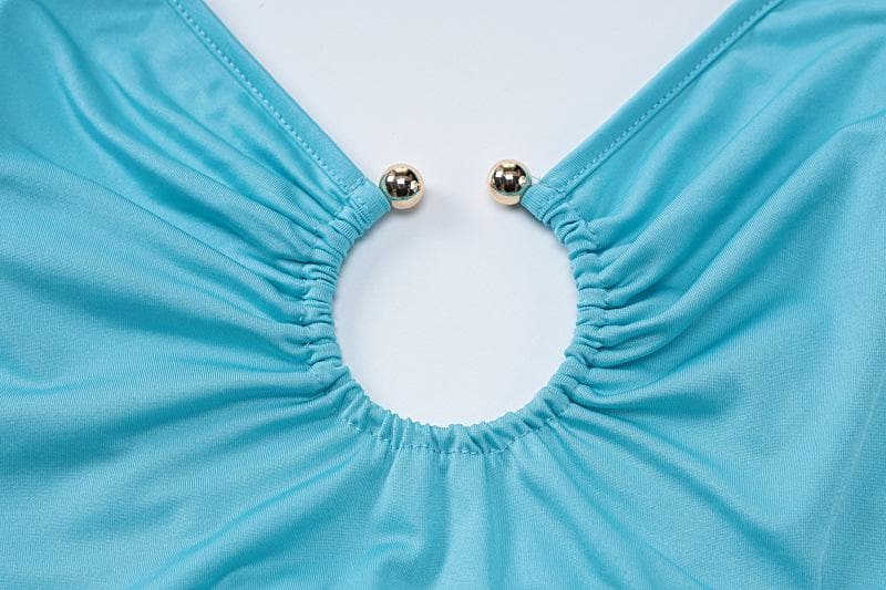 O ring ruched hollow out high slit cami cut out maxi dress