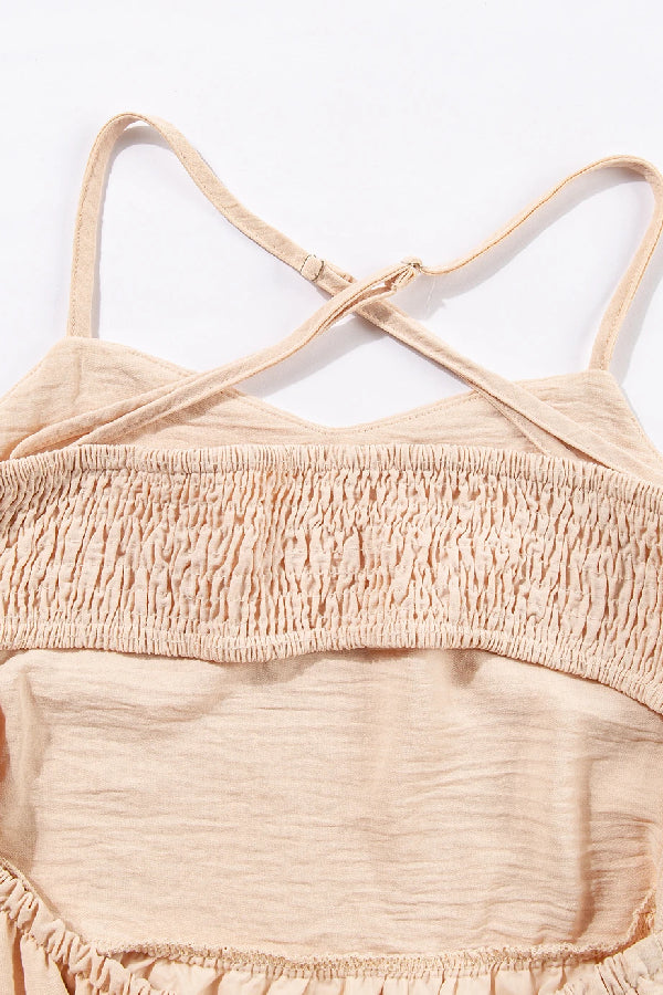 Oatmeal Crossover Backless Bodice Tiered Maxi Dress