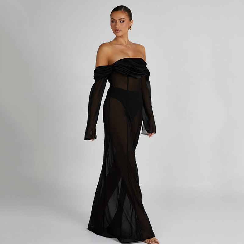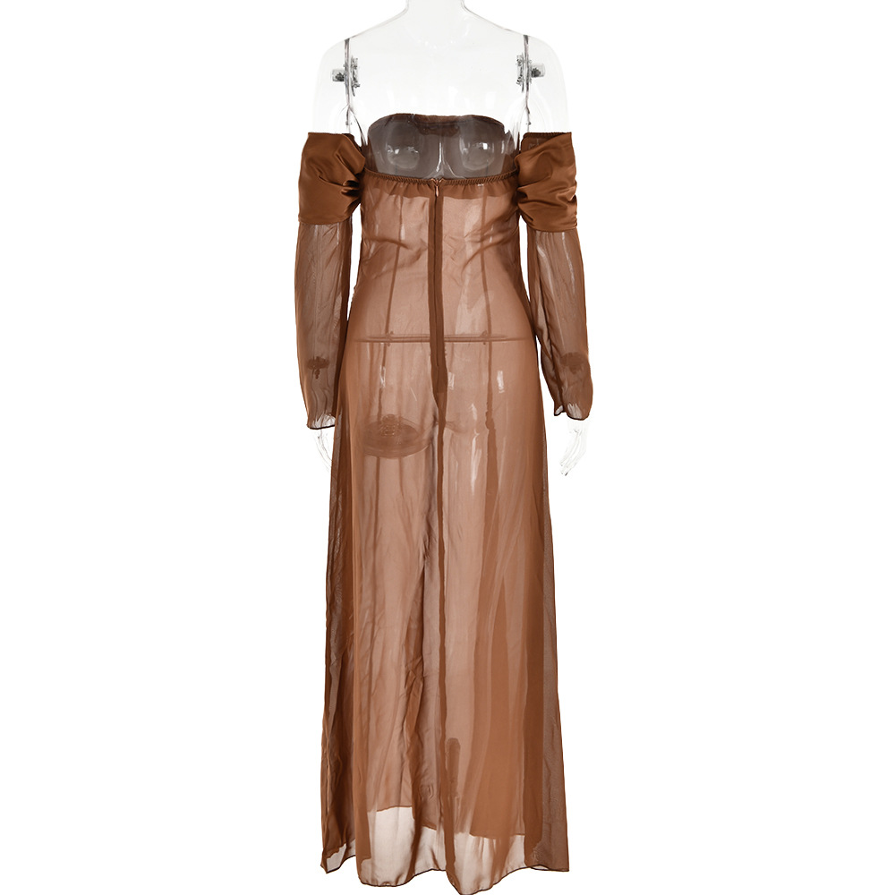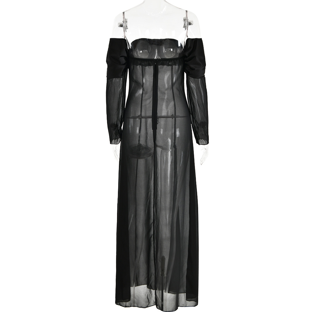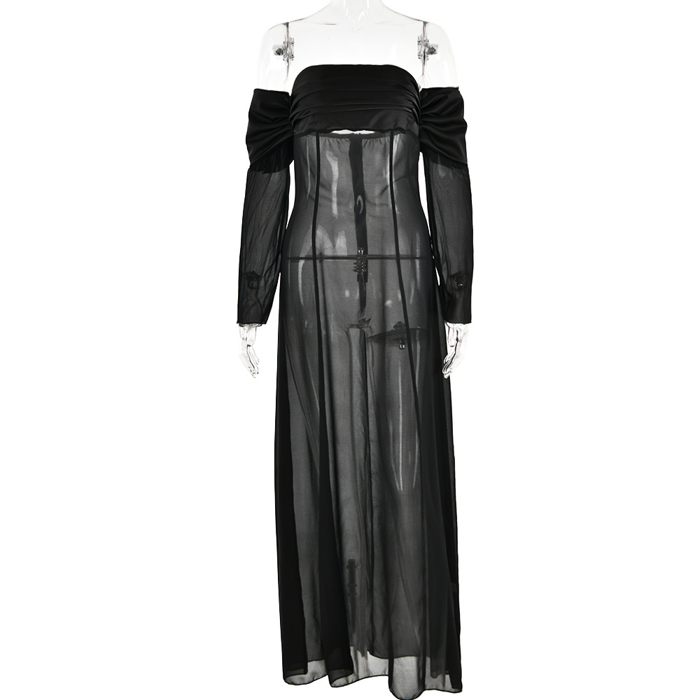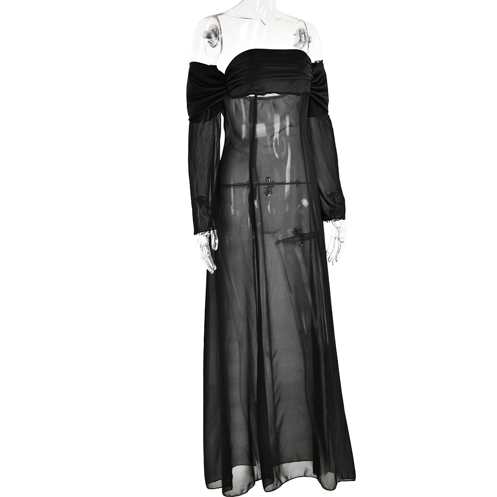 Off Shoulder Tube Long Sleeve See through Maxi Dress