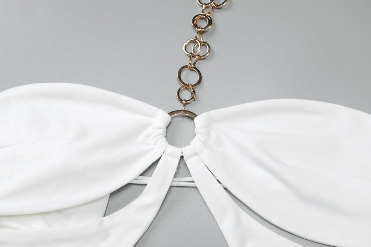 Off shoulder halter o ring hollow out metal chain cut out maxi dress