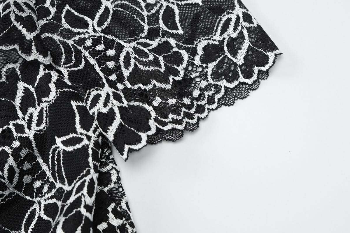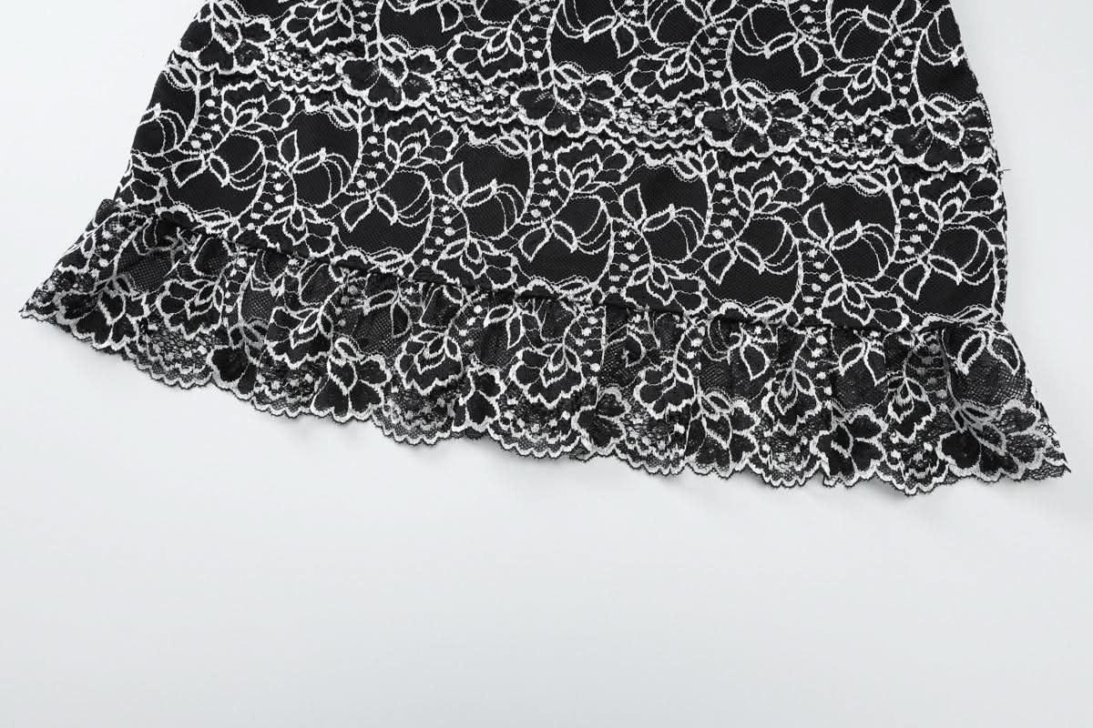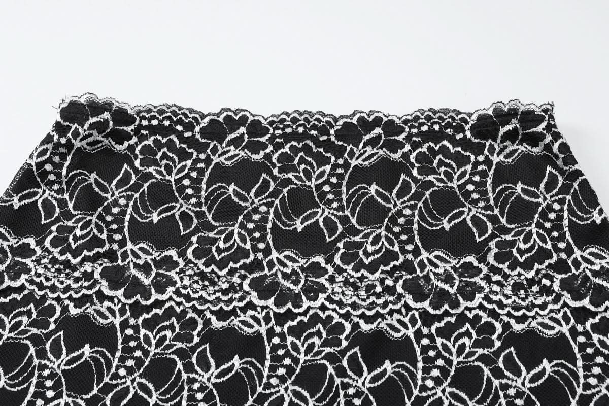 Off shoulder hollow out lace mini skirt set