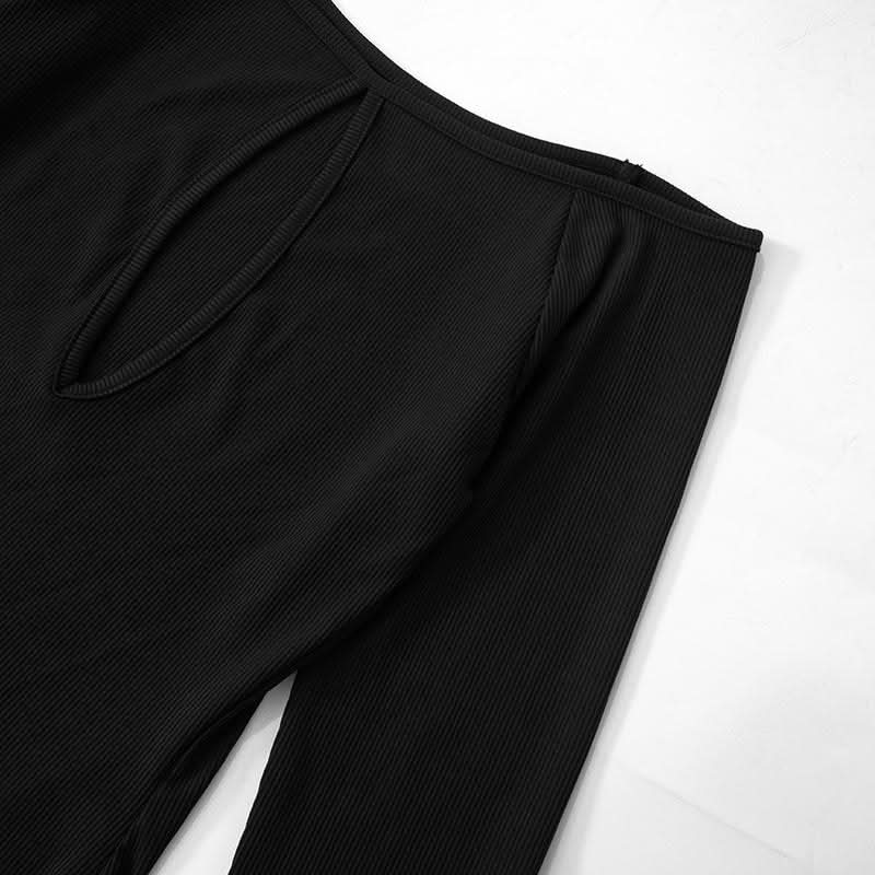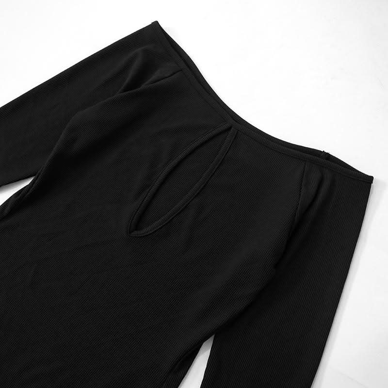 Off shoulder long sleeve hollow out slit cut out maxi dress