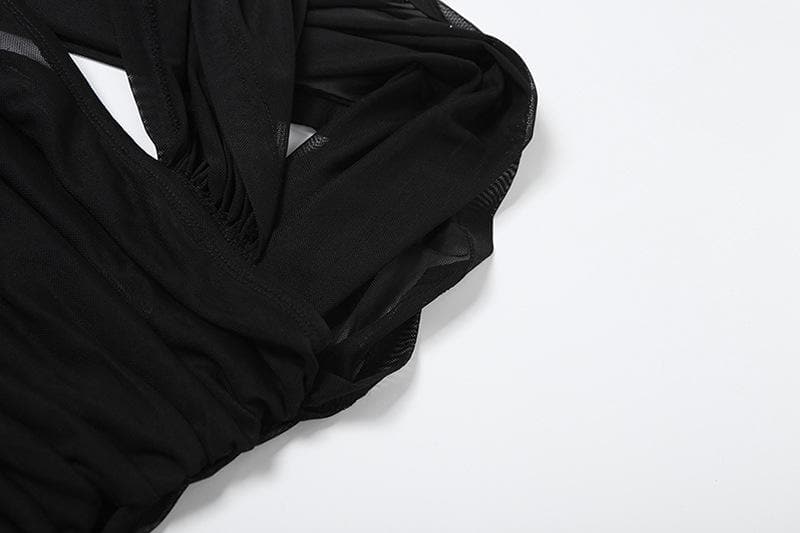 Off shoulder ruched cross front sheer mesh maxi dress-final-sale