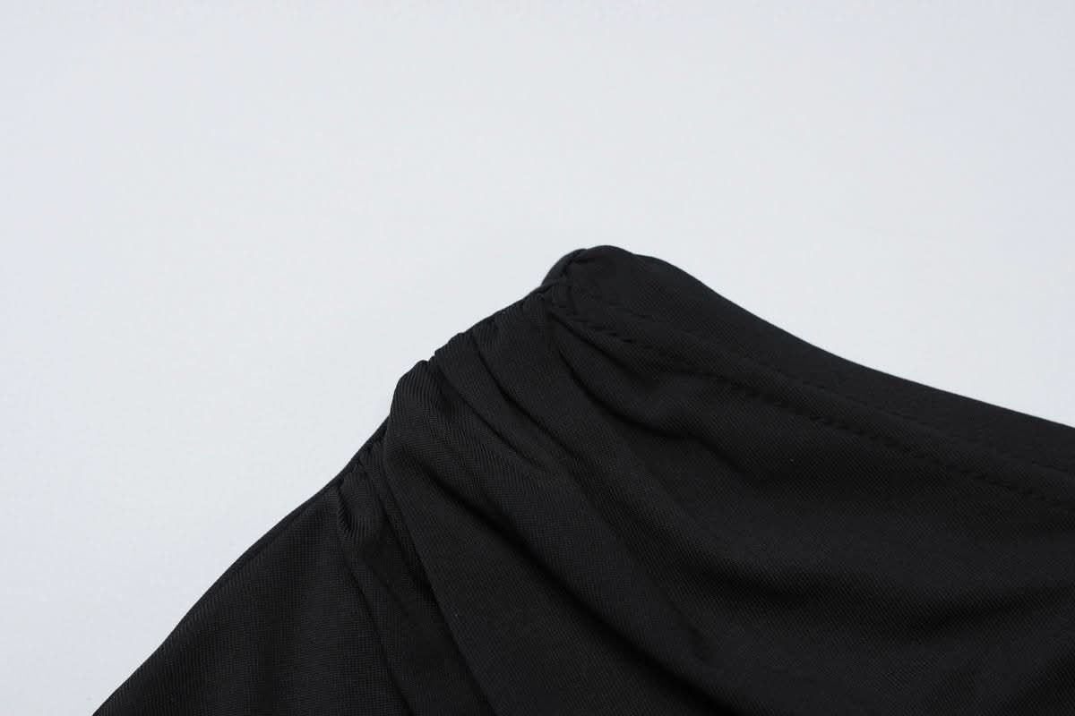 One shoulder long sleeve flower applique maxi skirt set