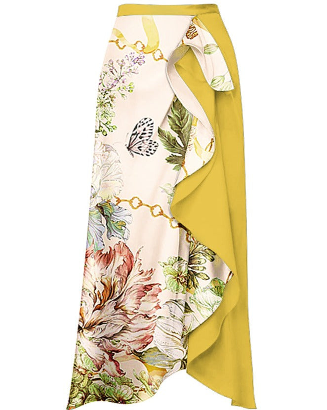 One Shoulder Floral Print One Piece Swimsuit and Skirt