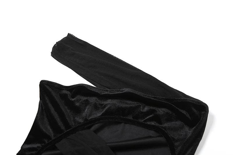 One shoulder irregular hollow out velvet mesh cut out maxi dress