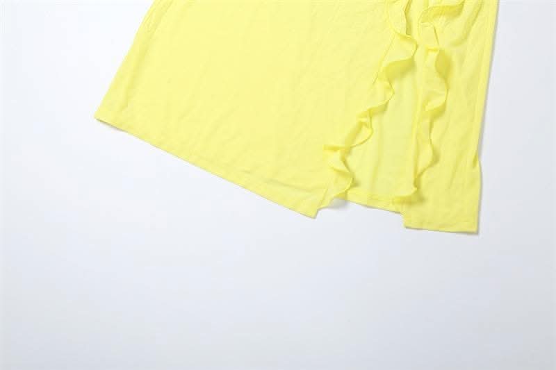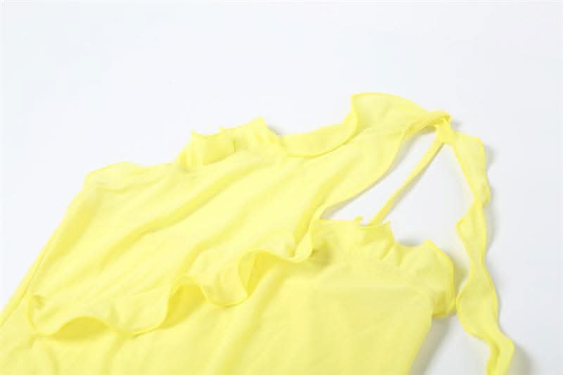 One shoulder ruffle irregular high slit maxi dress-final-sale