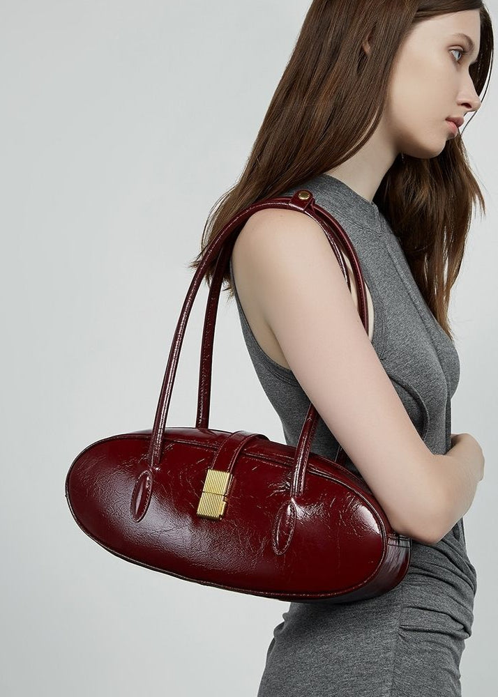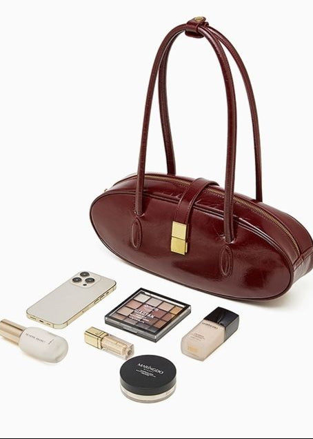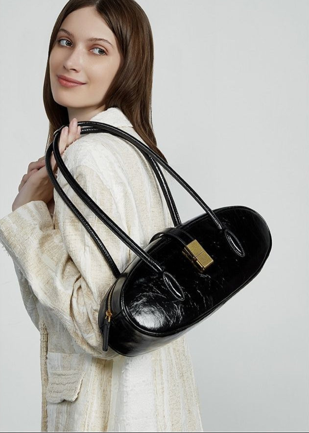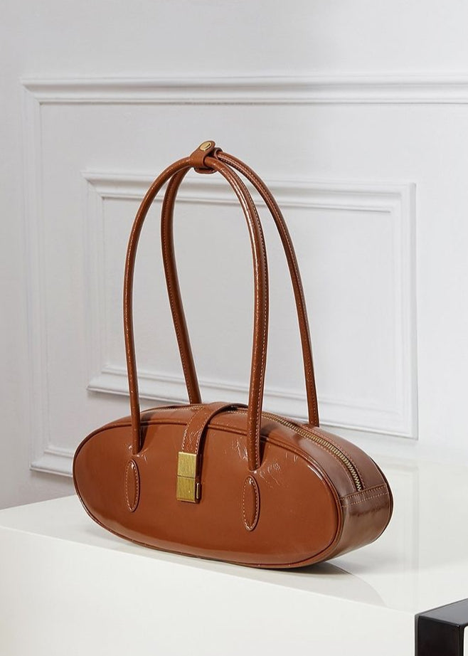 Oval Patent Leather Top Handle Bag – Chic Structured Handbag for Women