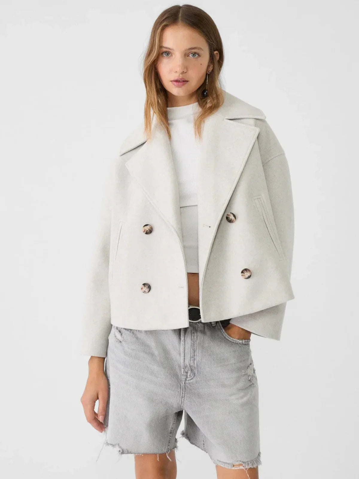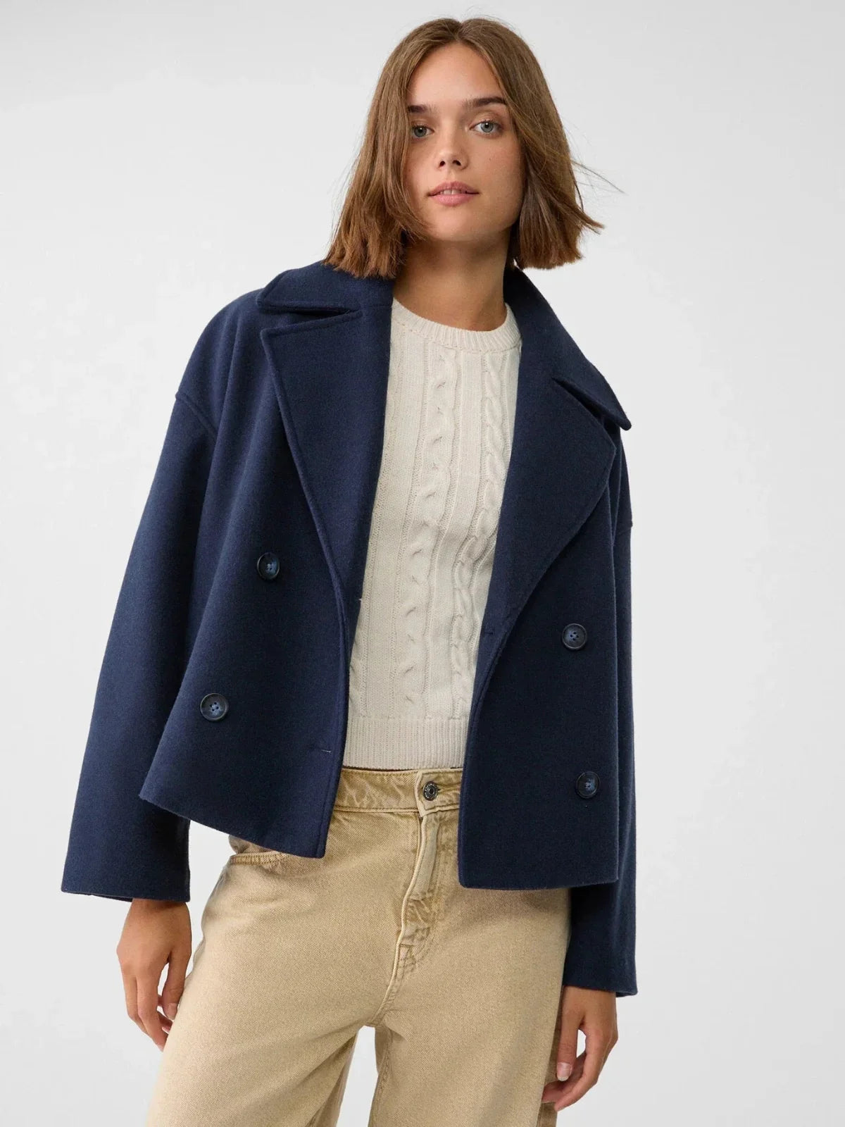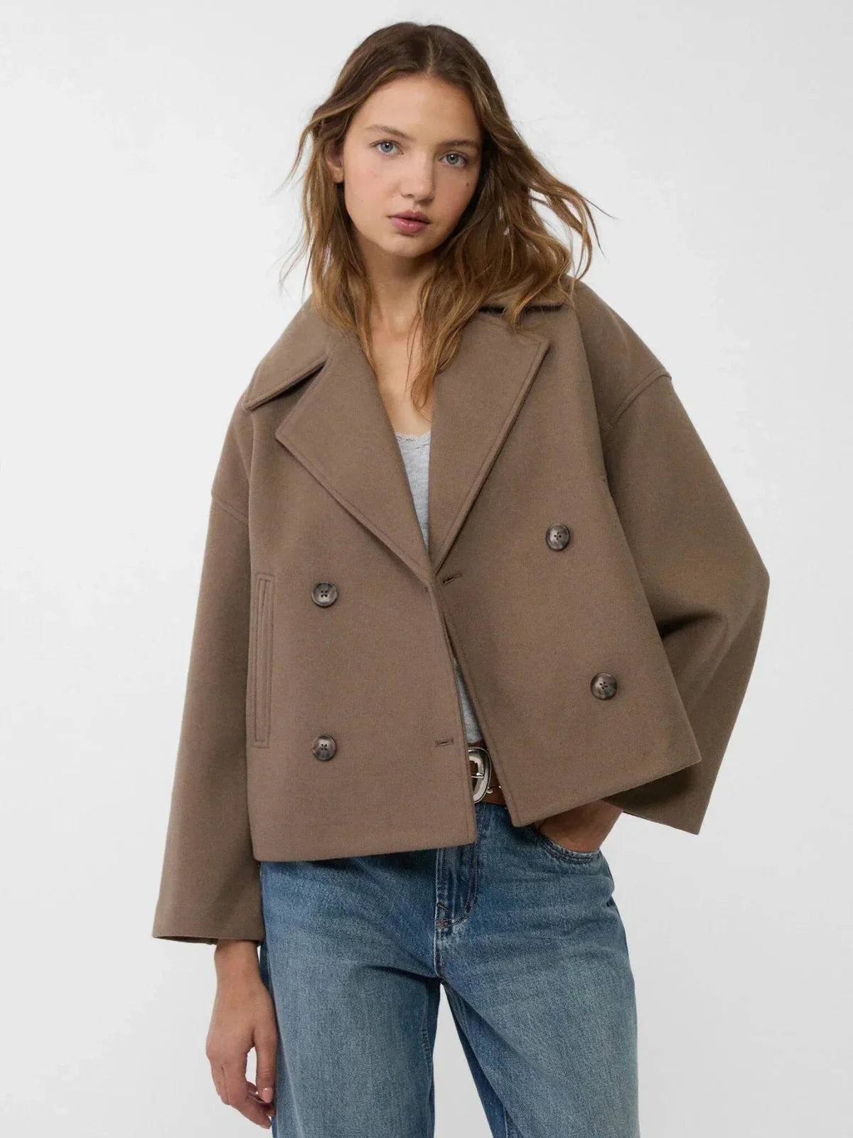 This modern take on a classic design features an oversized, boxy fit for a relaxed yet sophisticated silhouette. Crafted from a premium wool blend, this coat provides warmth without compromising style. The double-breasted front and wide lapels add a touch of timeless elegance, making it an ideal choice for layering over casual or tailored outfits. Perfect for chilly days, this coat effortlessly combines comfort and refinement.