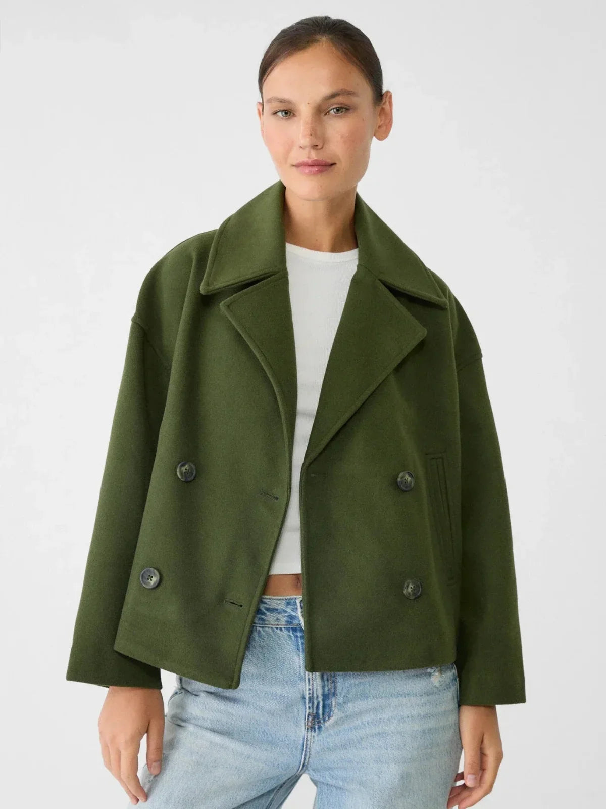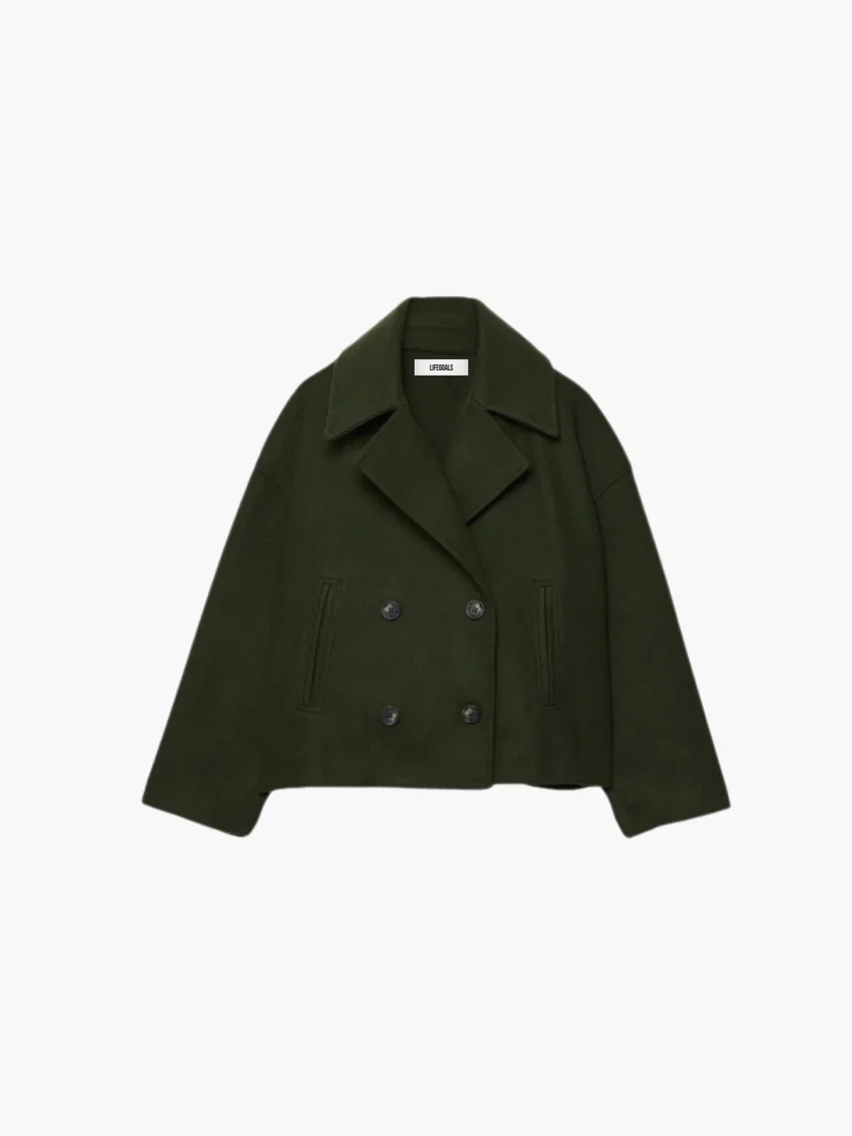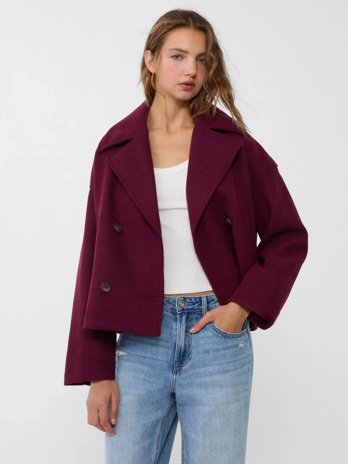 This modern take on a classic design features an oversized, boxy fit for a relaxed yet sophisticated silhouette. Crafted from a premium wool blend, this coat provides warmth without compromising style. The double-breasted front and wide lapels add a touch of timeless elegance, making it an ideal choice for layering over casual or tailored outfits. Perfect for chilly days, this coat effortlessly combines comfort and refinement.