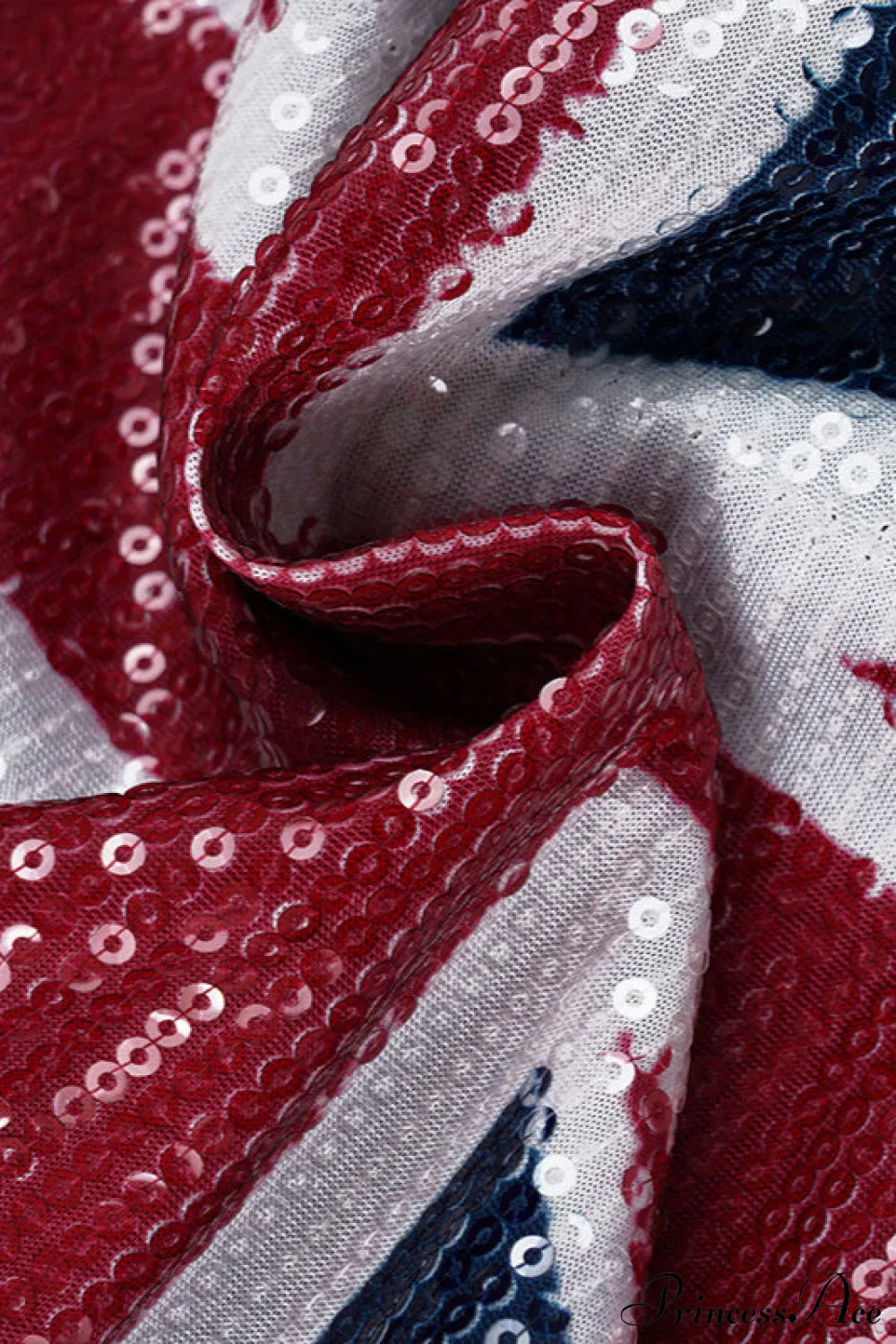Patriotic Sequin Color Block Bodycon Mini Skirt