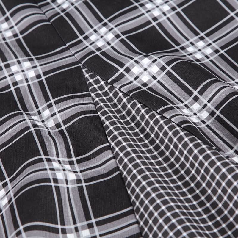 Plaid patchwork contrast zip-up maxi skirt