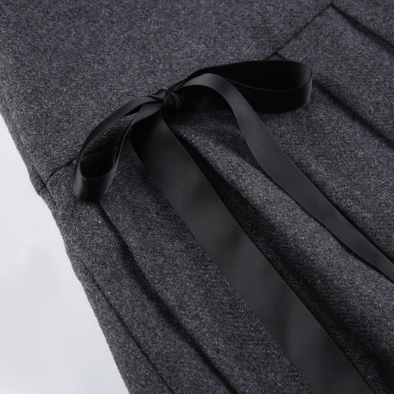 Pleated bowknot contrast high rise A line mini skirt