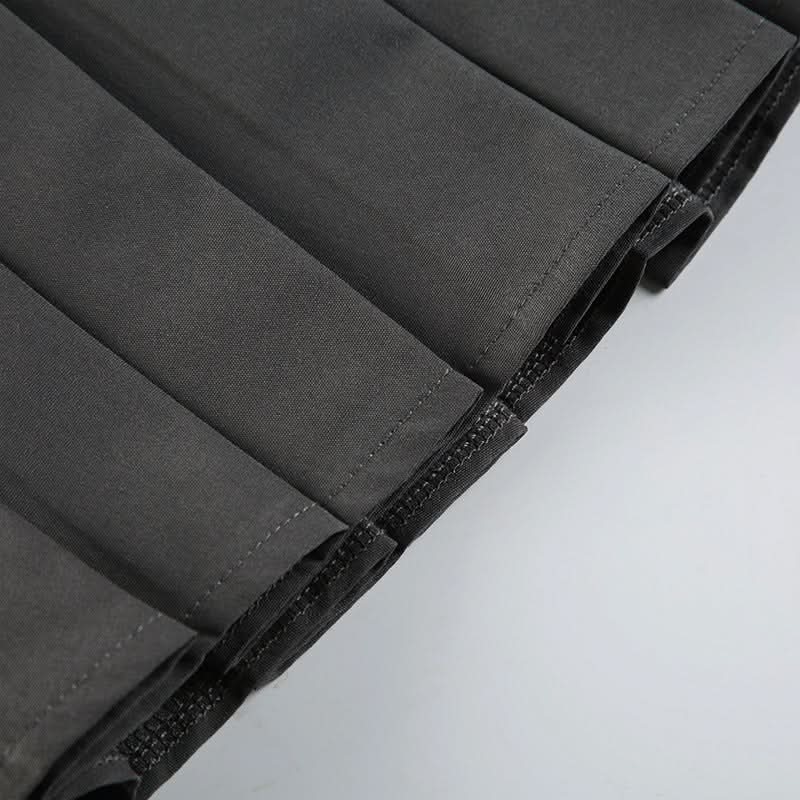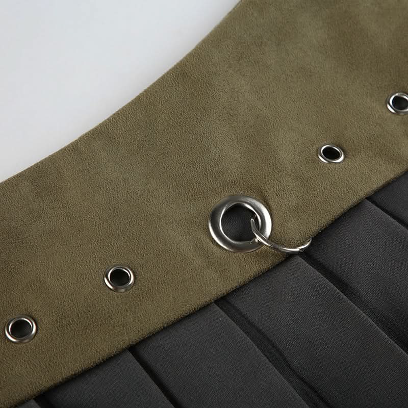 Pleated hollow out o ring zip-up A line cut out mini skirt
