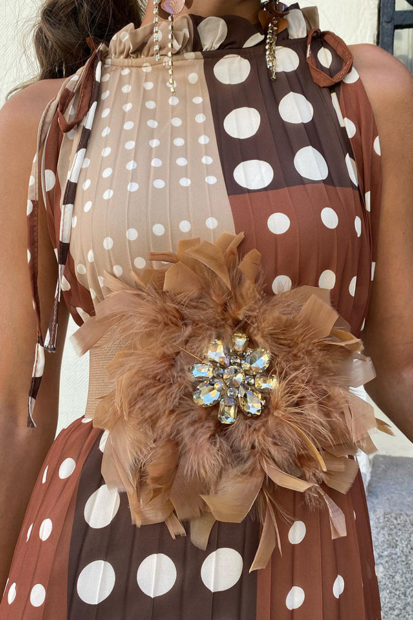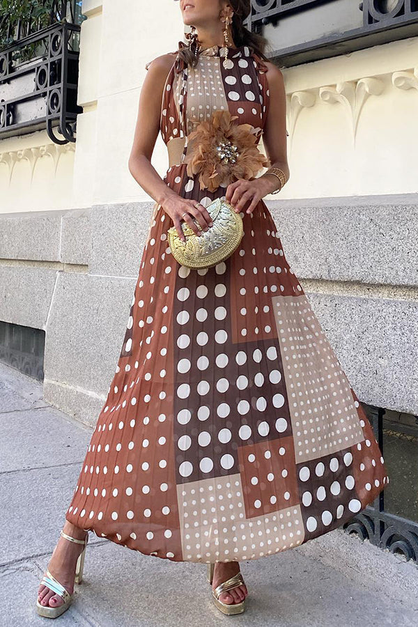 Polka Dot Panel Sleeveless Half Turtleneck Dress(without belt)