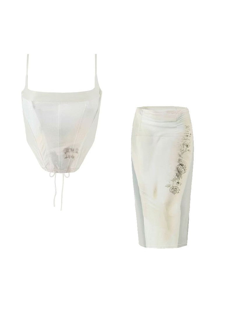 Printed Backless Corset Top & Skirt Coord Set