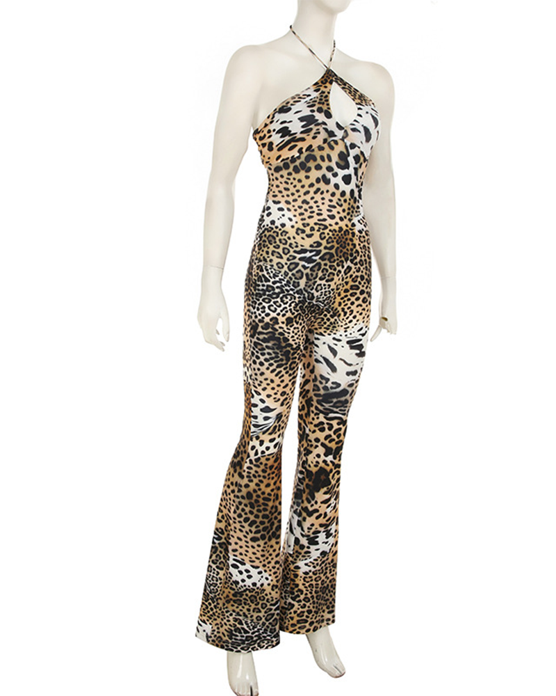 Printed High-Waisted Skinny Jumpsuits With Leopard Print