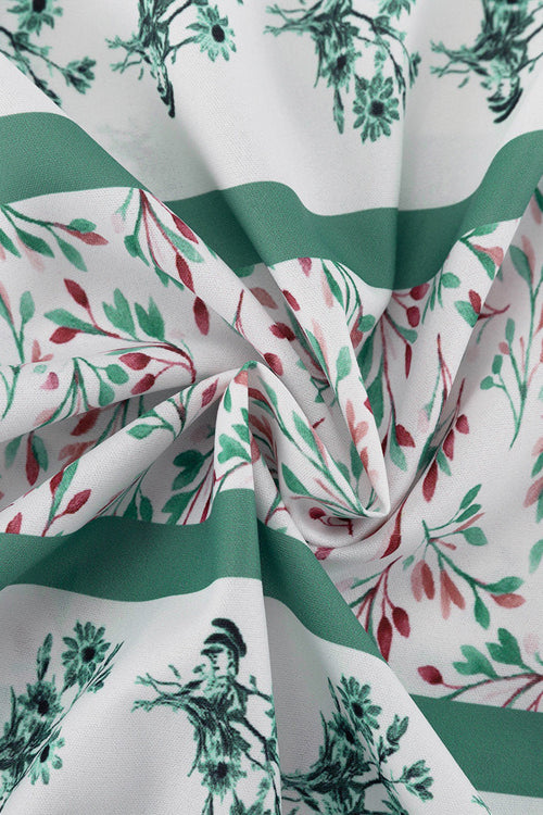 Printed Long Sleeve Crew Neck Cropped Top Split Bodycon Skirt Two Piece Set