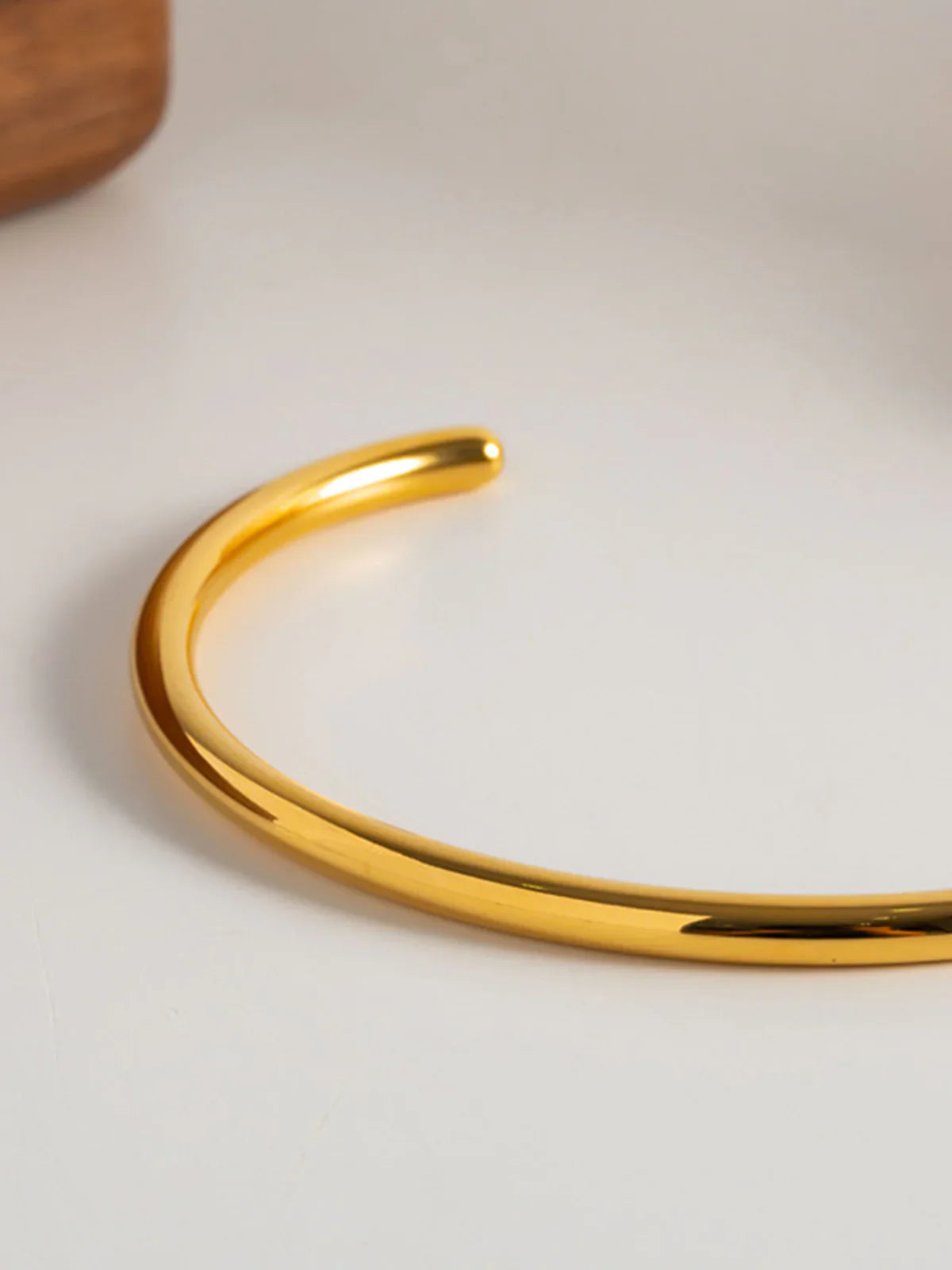 The Pure Bliss Golden Open Bracelet, crafted from 100% titanium steel, exudes timeless elegance with its open design and radiant golden finish. This versatile bracelet is perfect for adding a touch of sophistication to any outfit.