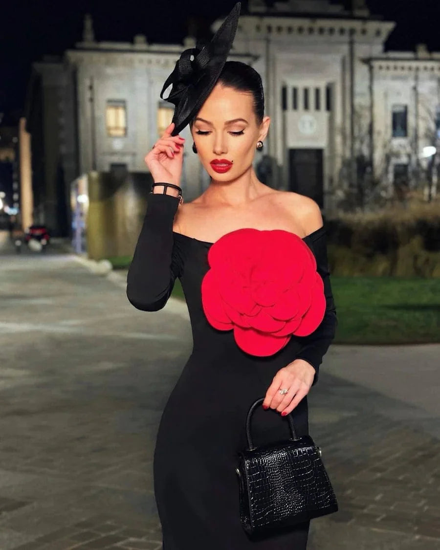 Indulge in a new fashion statement with our Quinn Maxi Dress. This elegant evening dress features a stunning red floral design, off-the-shoulder neckline, and bodycon fit for a sexy yet sophisticated look. Perfect for any party or special occasion, it's a must-have for any modern woman's wardrobe.