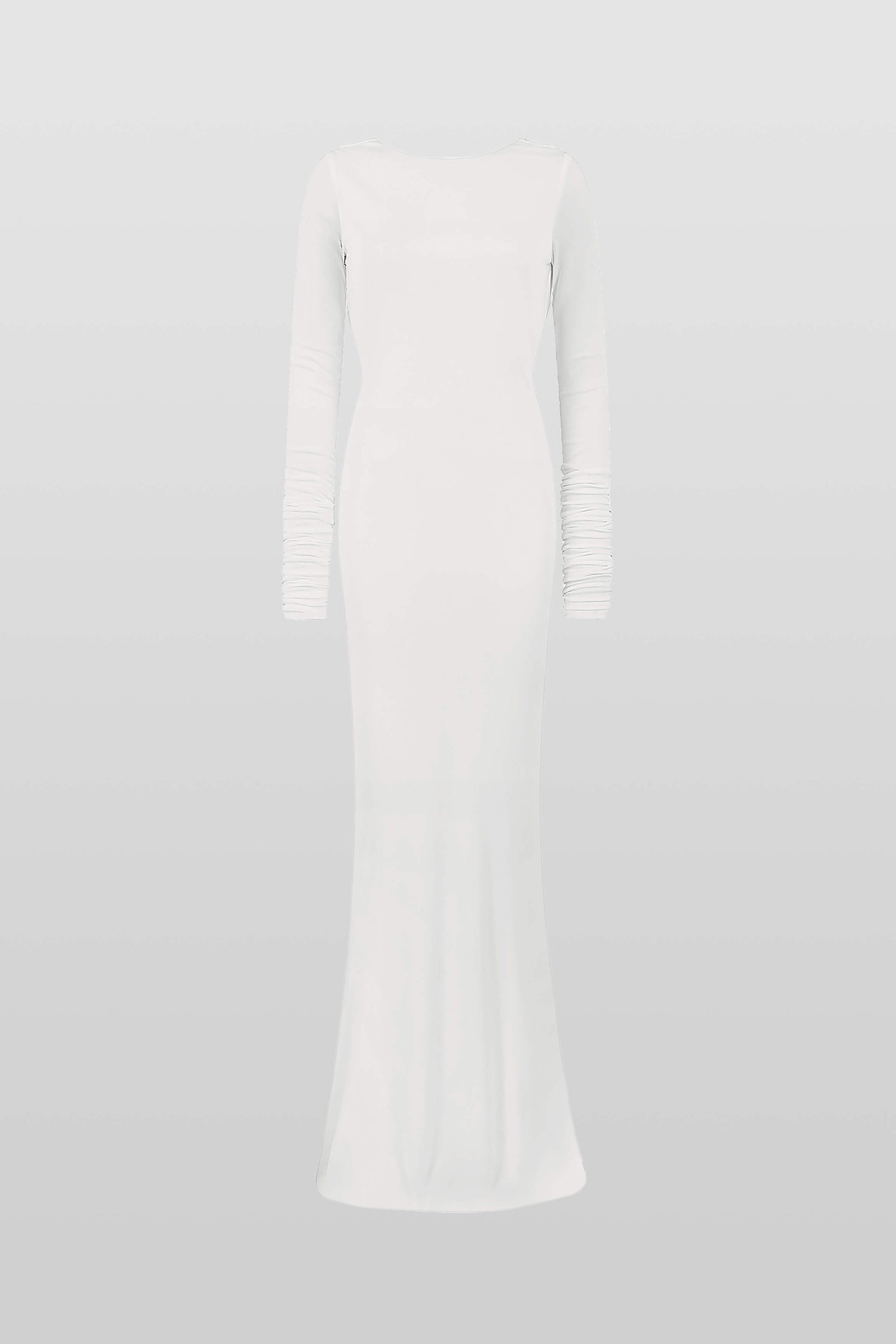 Low Back Drape, Long Sleeve, Mermaid Fit, Maxi Length. Dress Length for Size S: 150cm/59''.