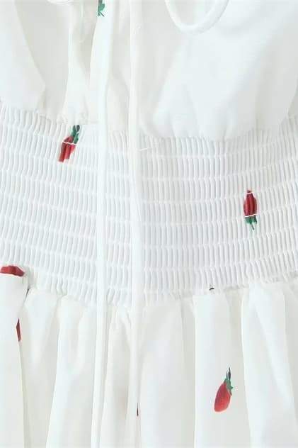 - Strawberry Print, A-line, Puff Sleeve, O-Neck, Mini Length.