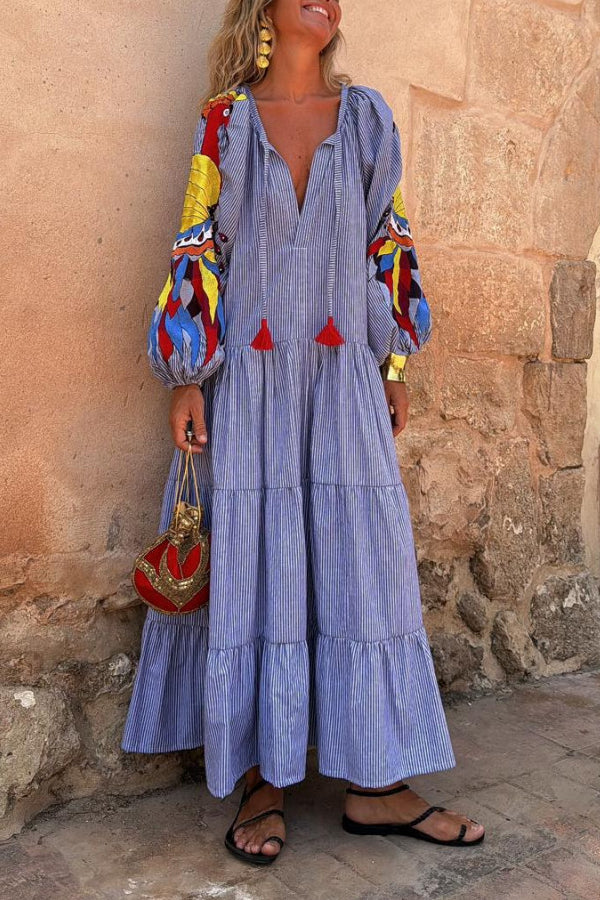 Red and white striped print long dress