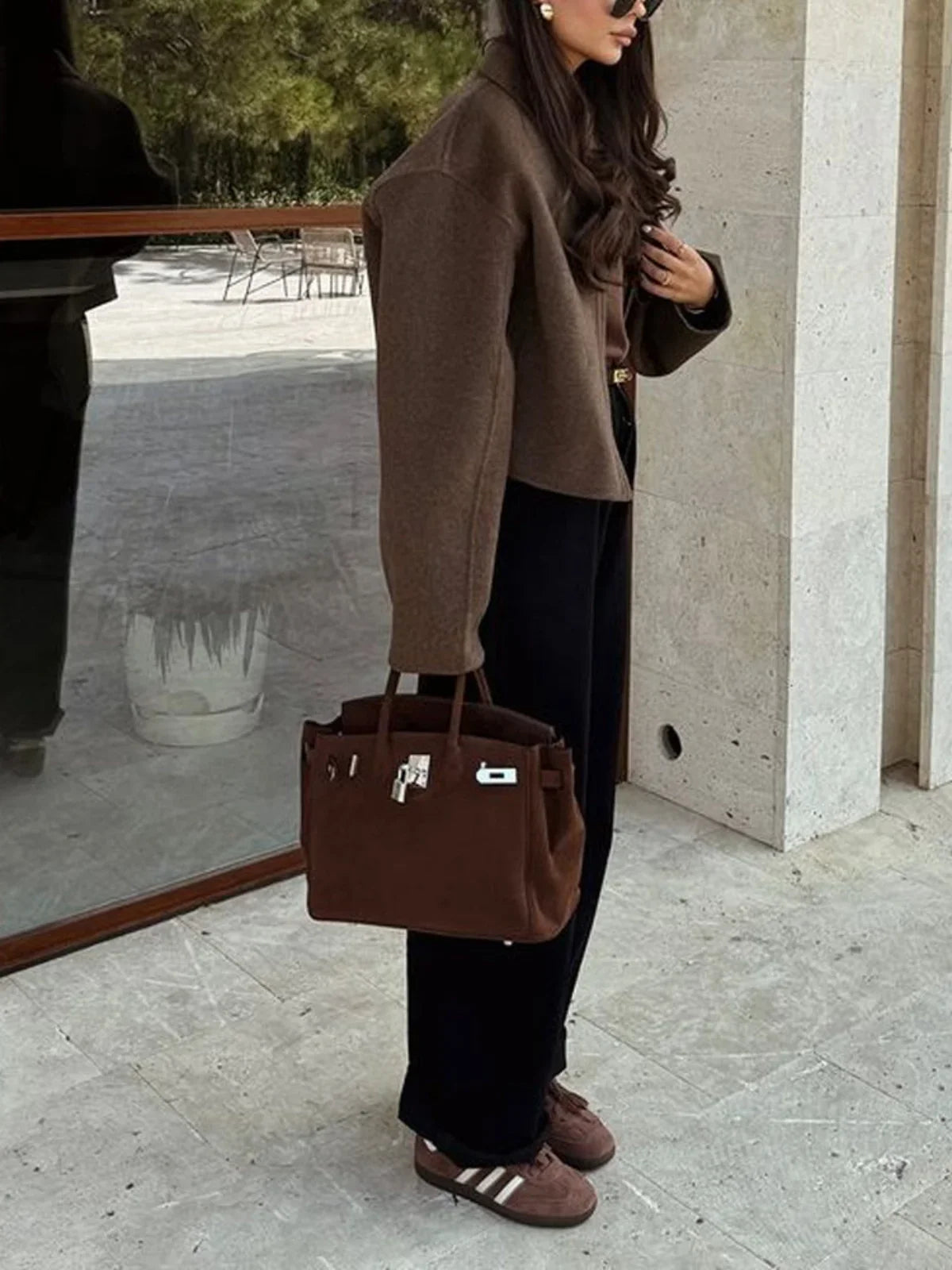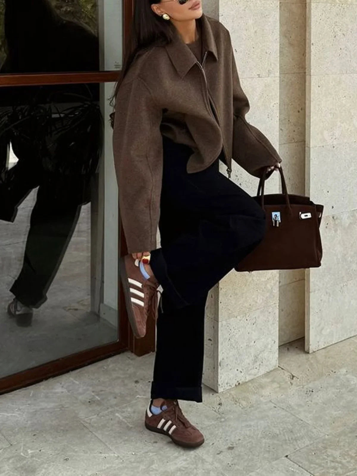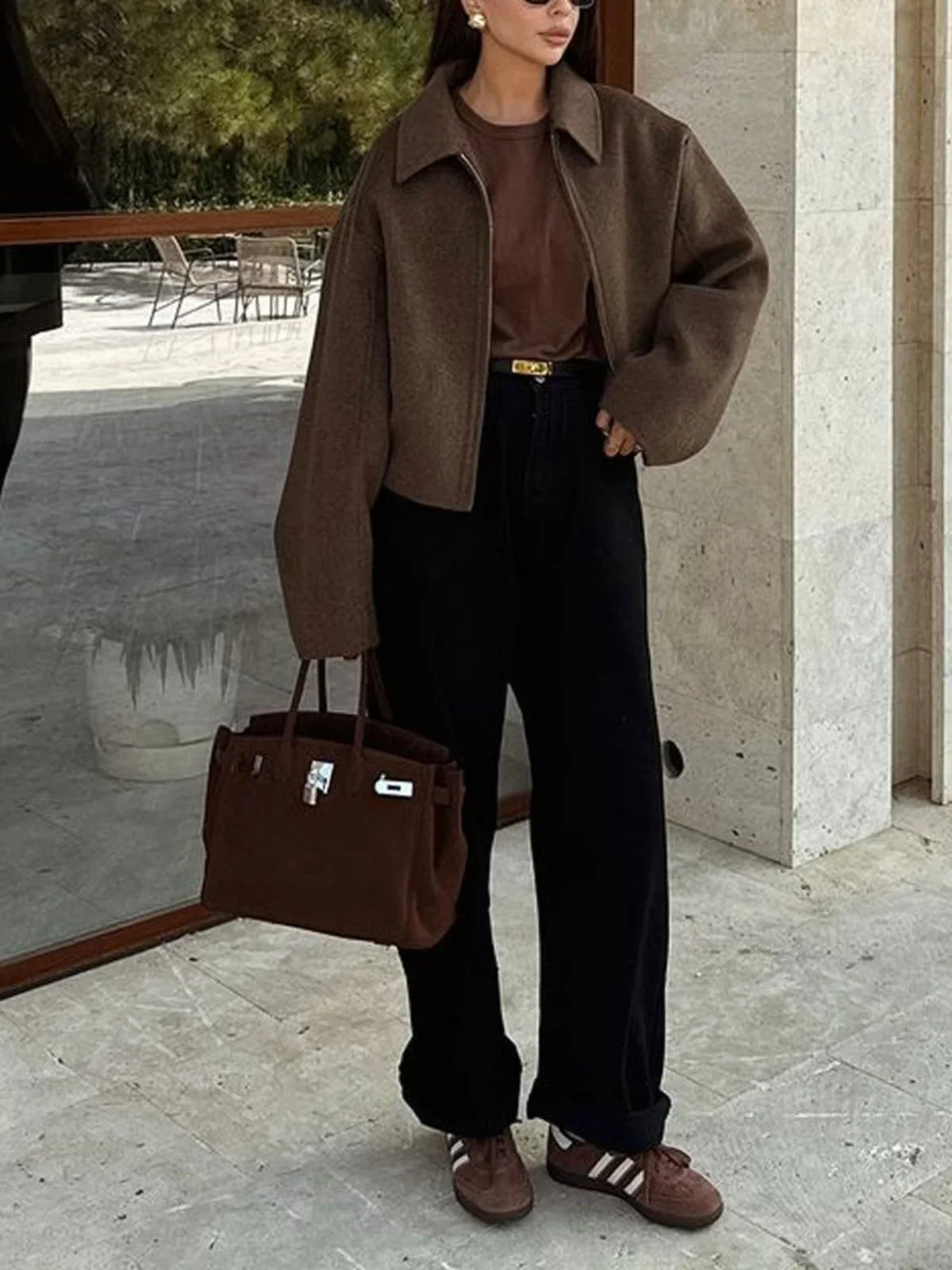 Crafted from a soft yet durable wool blend, this jacket combines the classic bomber silhouette with a refined, minimalist style. Featuring a zip-up front and a structured collar, it offers both warmth and versatility, making it a perfect layering piece for any season. The relaxed fit adds a touch of laid-back elegance, ideal for pairing with both casual and polished outfits. Elevate your outerwear collection with this timeless, cozy staple.
