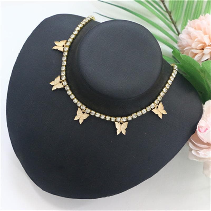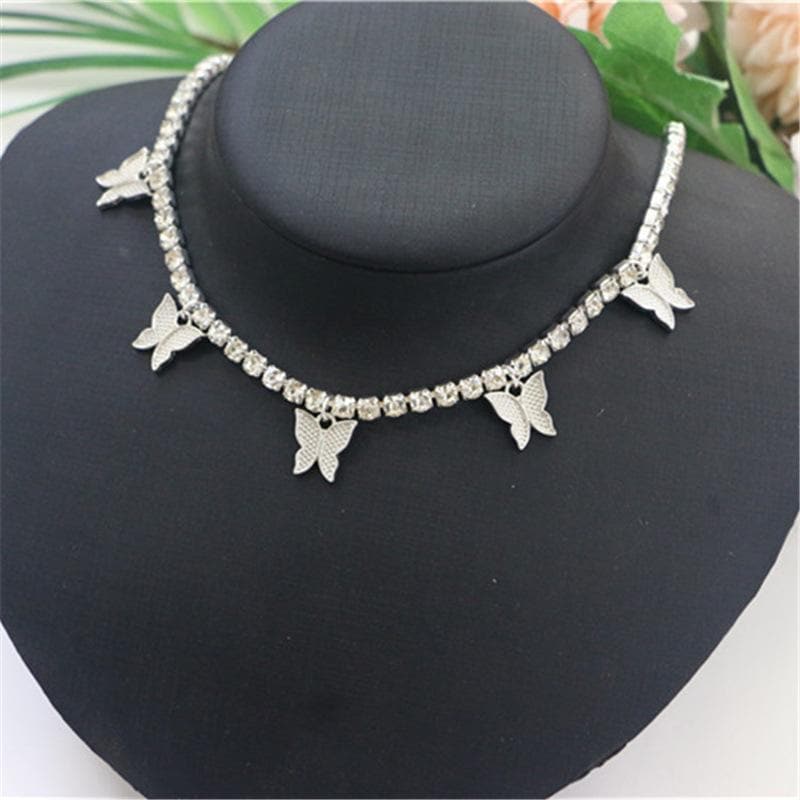 Rhinestone butterfly pendant choker necklace