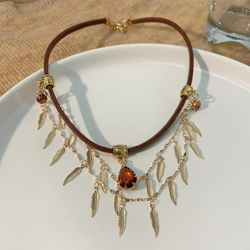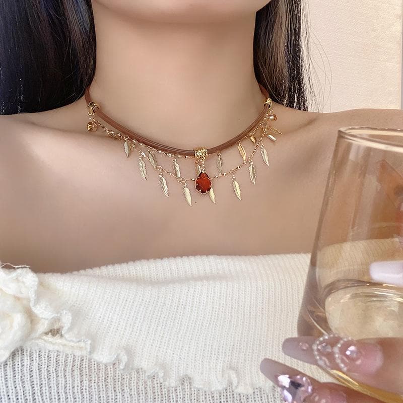 Rhinestone layered chain choker necklace