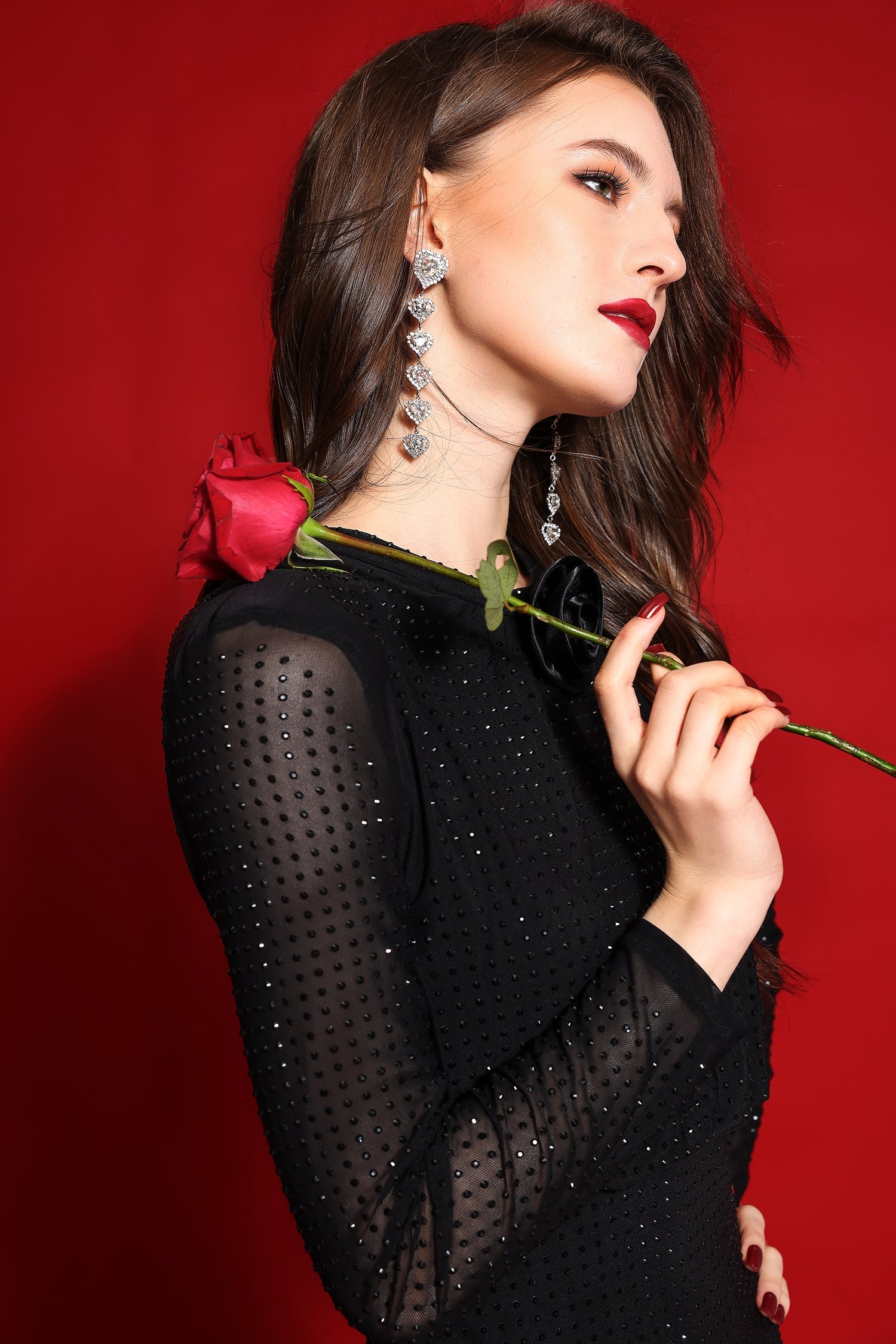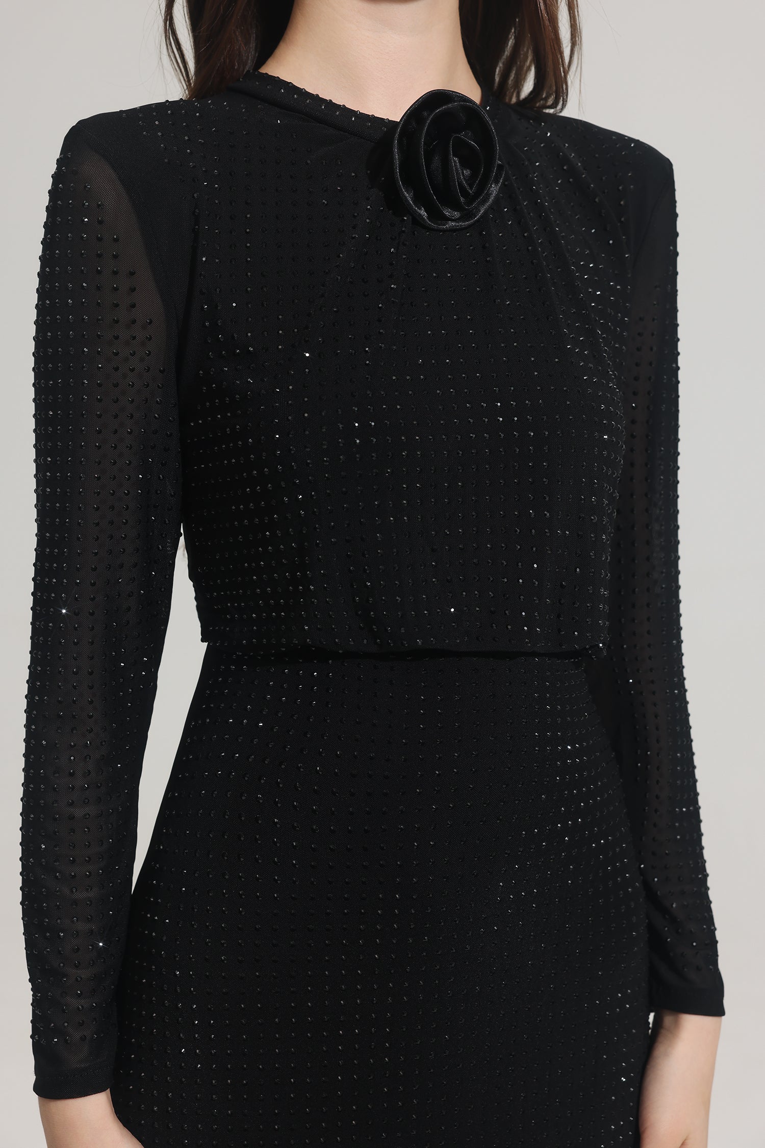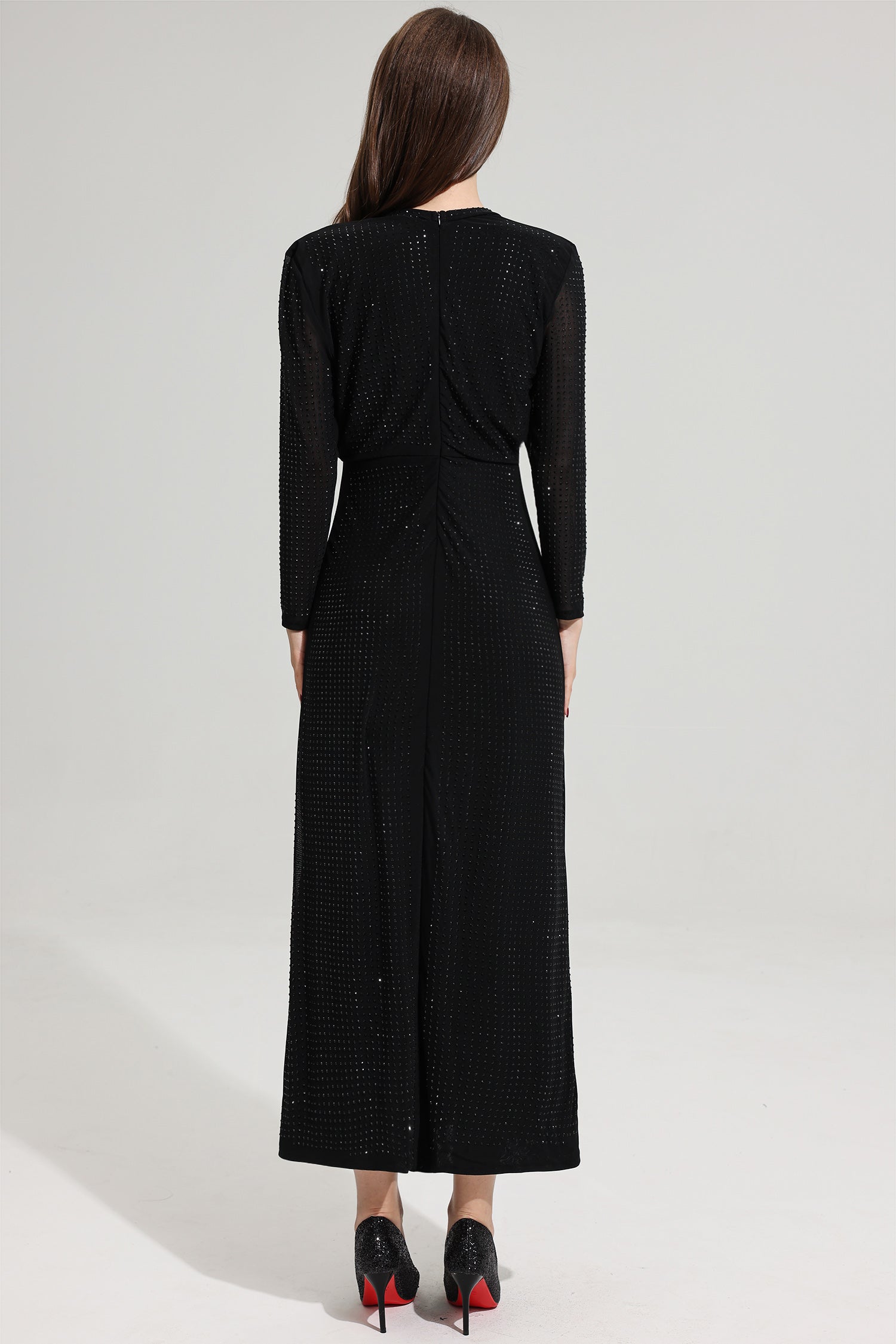 Rhinestone Stand Collar Solid Mermaid Maxi Dress