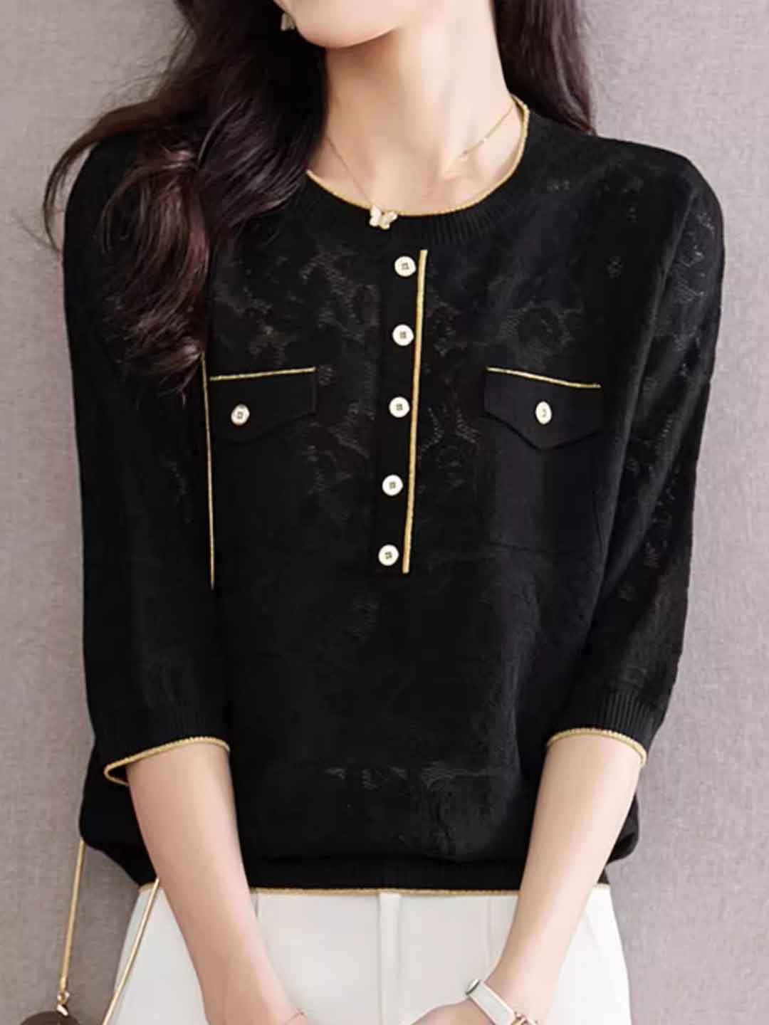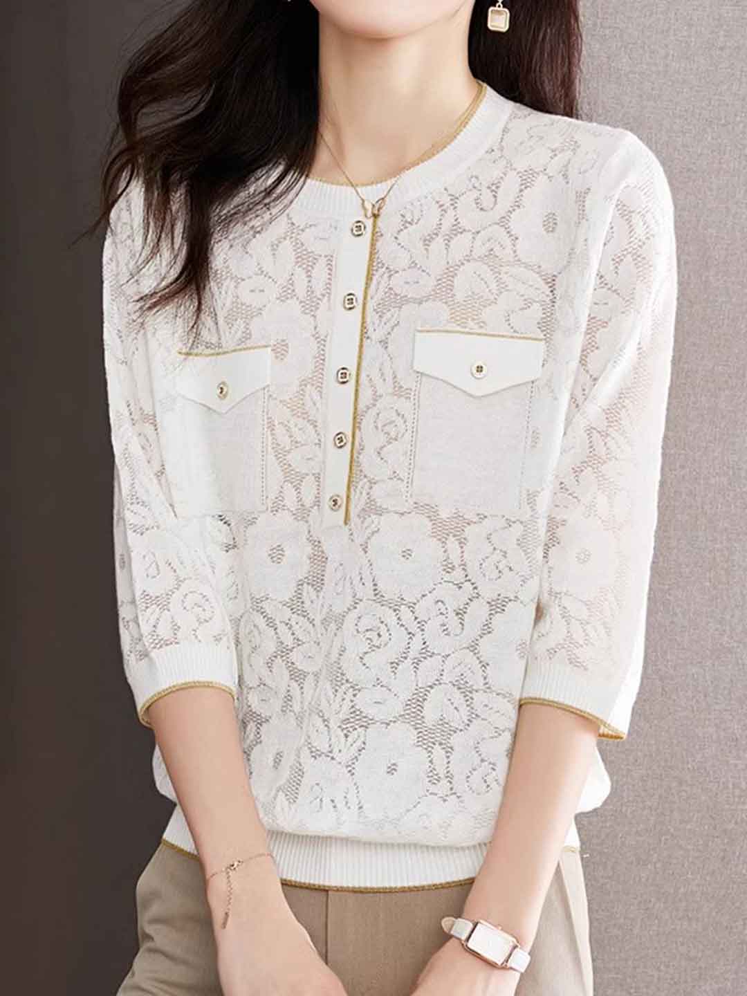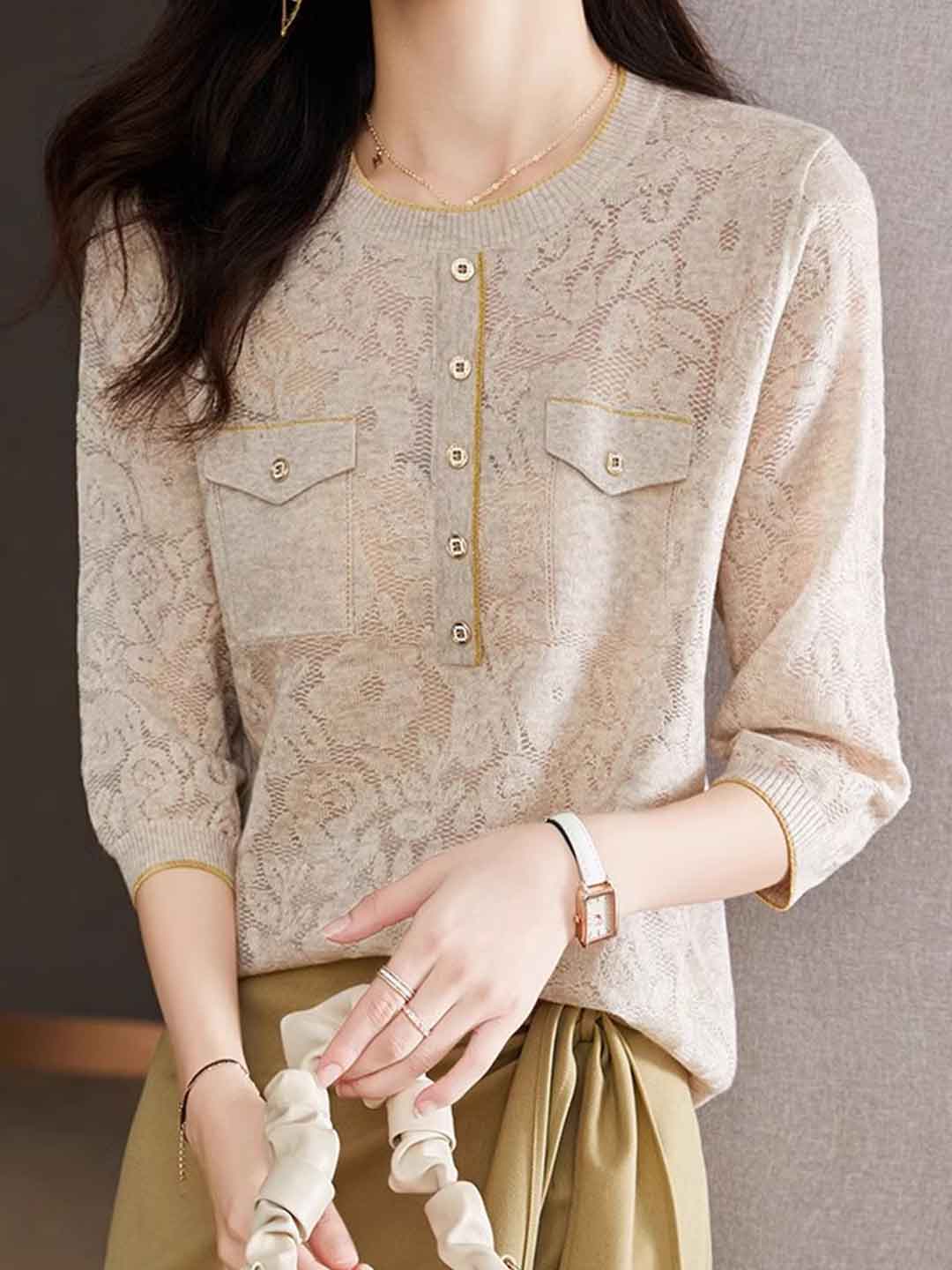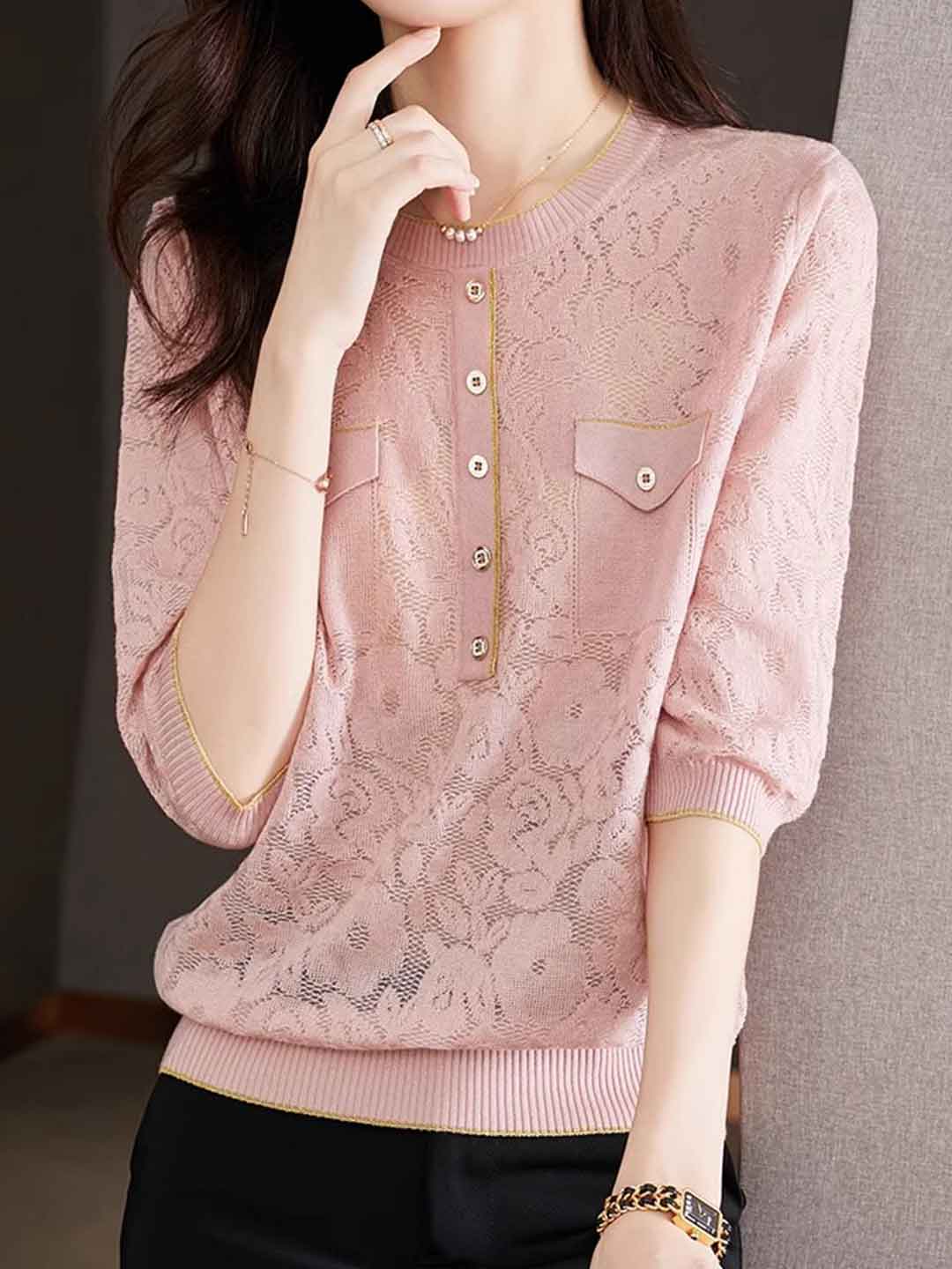 Riley Loose Crew Neck Hollowed Solid Color Knitted Top