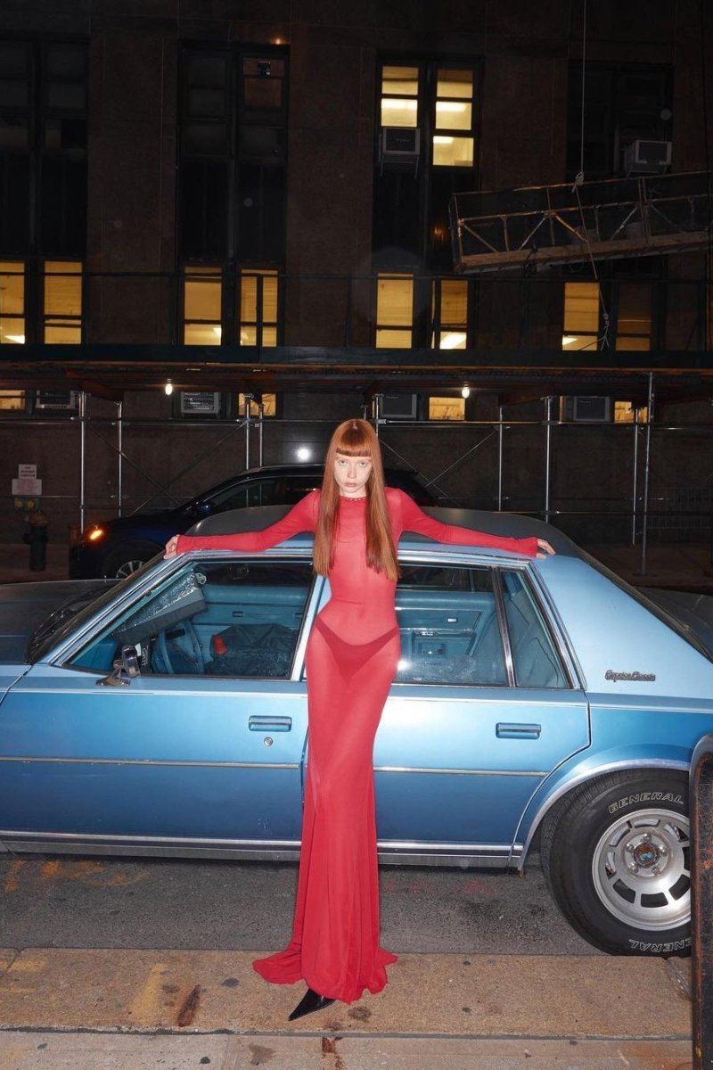 - Long Sleeve, Cut-Outs, Semi-sheer, Maxi Length.