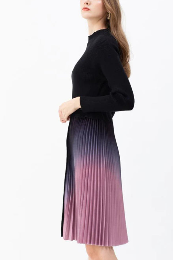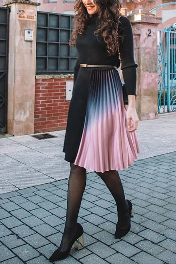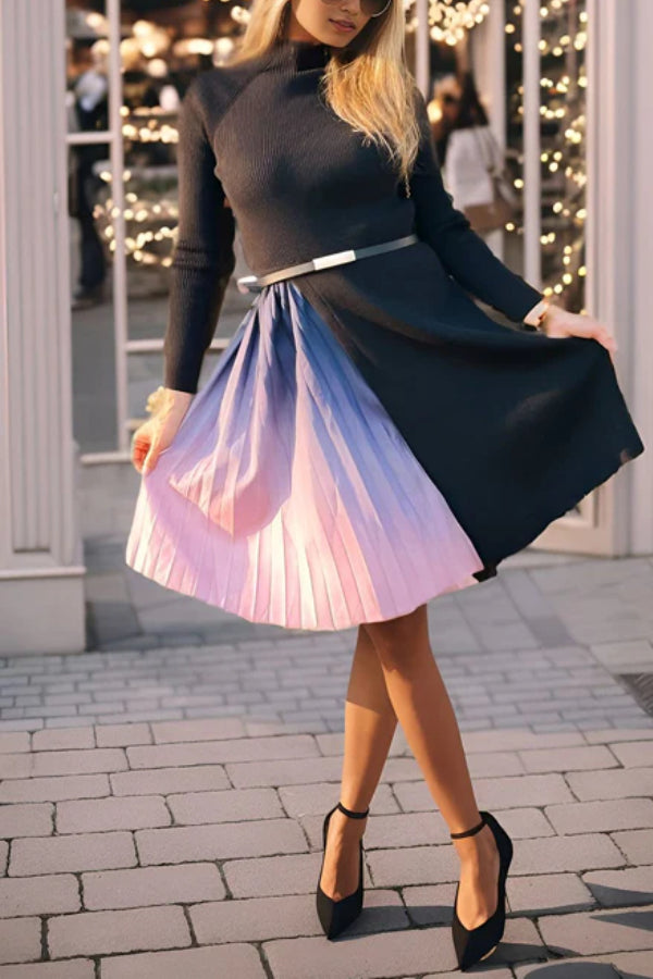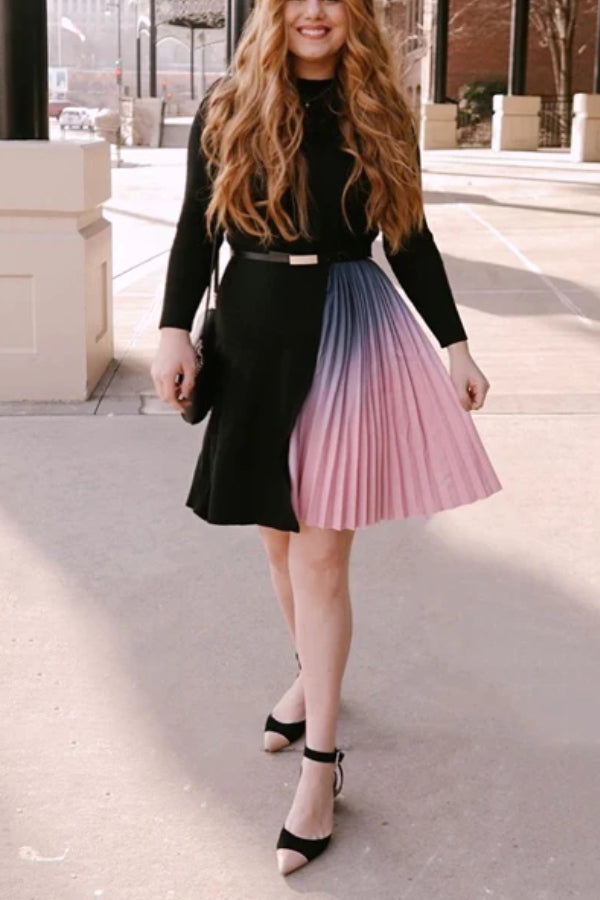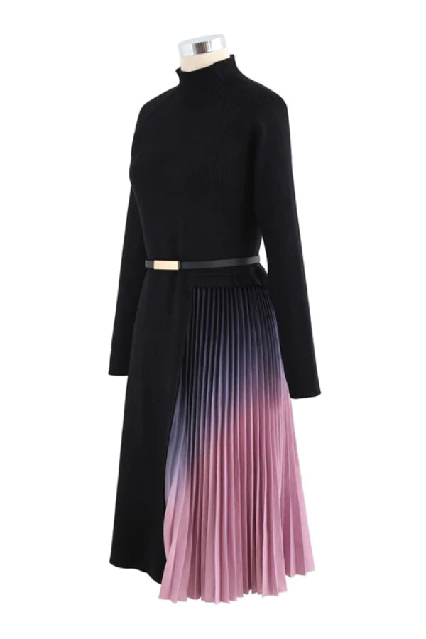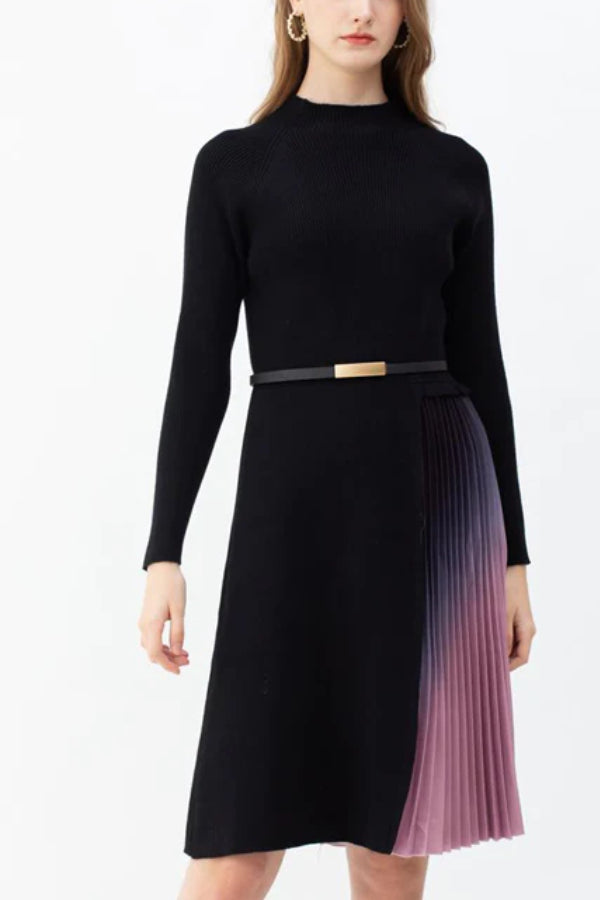 - Beetsweeti Exclusive! Sass and class come together perfectly with the Romance That Wows Pleated Belted Knit Dress! Ponte knit shapes this perfect-for-work dress with long sleeves, crew neckline, and princess-seamed bodice. Fitted waist tops a flattering skater skirt combined with half tie-dye pleated and half knit.
