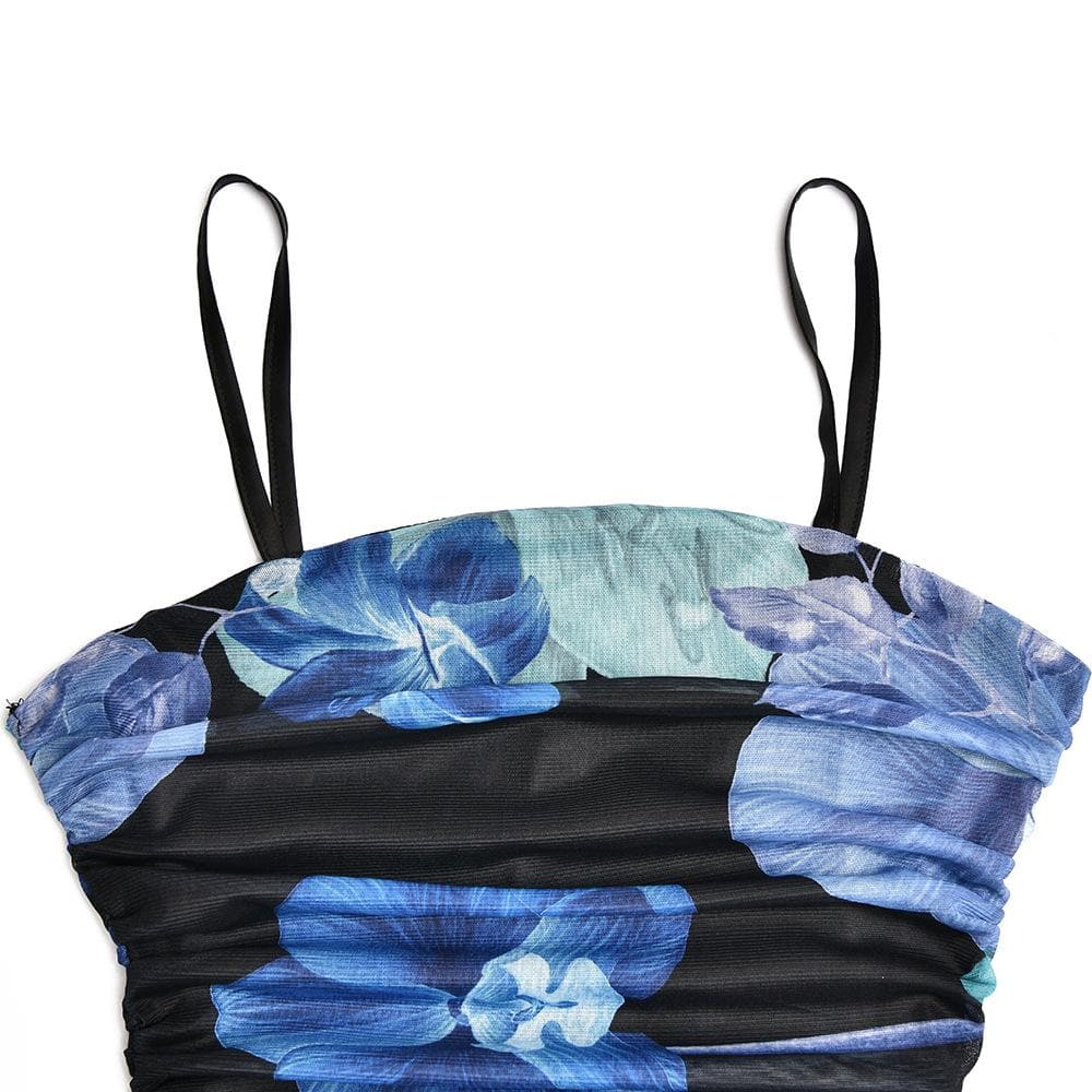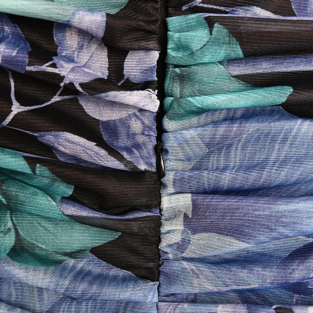 Ruched flower print zip-up square neck contrast slit maxi dress