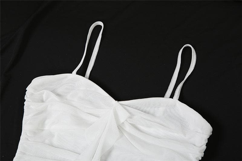 Ruched mesh ruffle sweetheart neck cami maxi dress