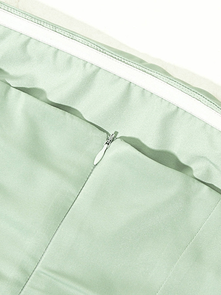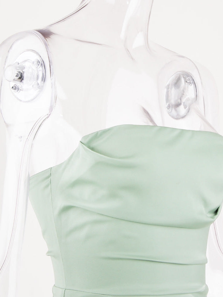 Ruched Satin Tube Top Split Maxi Dress