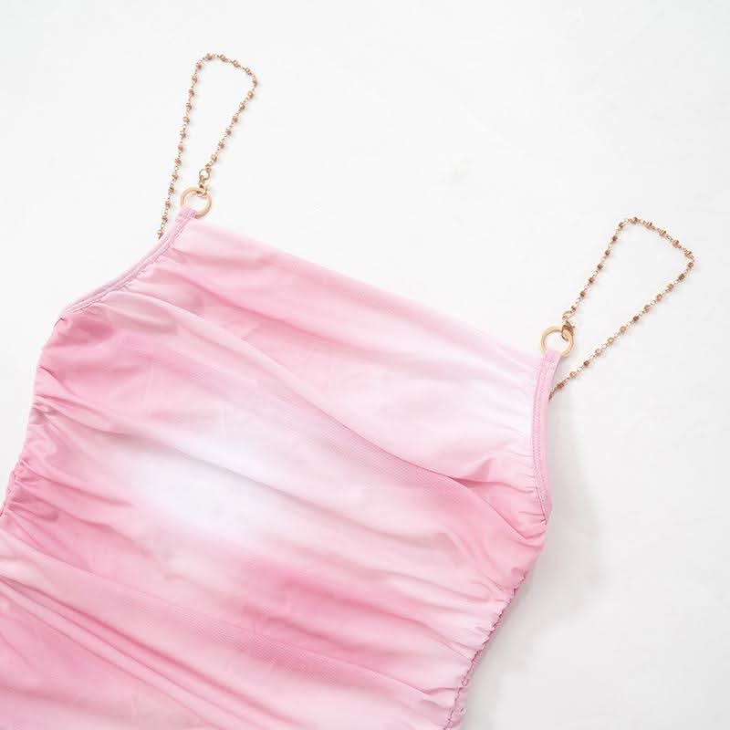 Ruched slit gloves mesh metal chain cami maxi dress