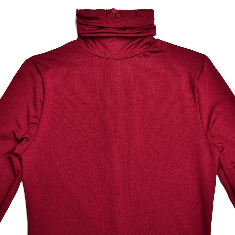 Ruched solid long sleeve turtle neck self tie maxi dress