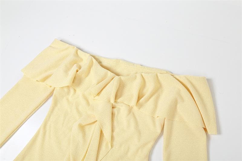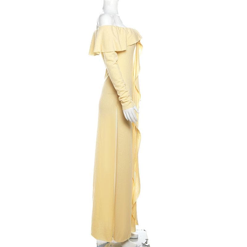 Ruffle off shoulder long sleeve backless solid maxi dress