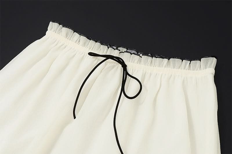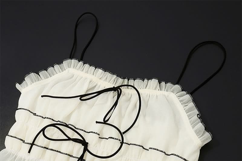 Ruffle stitch smocked bowknot cami maxi skirt set