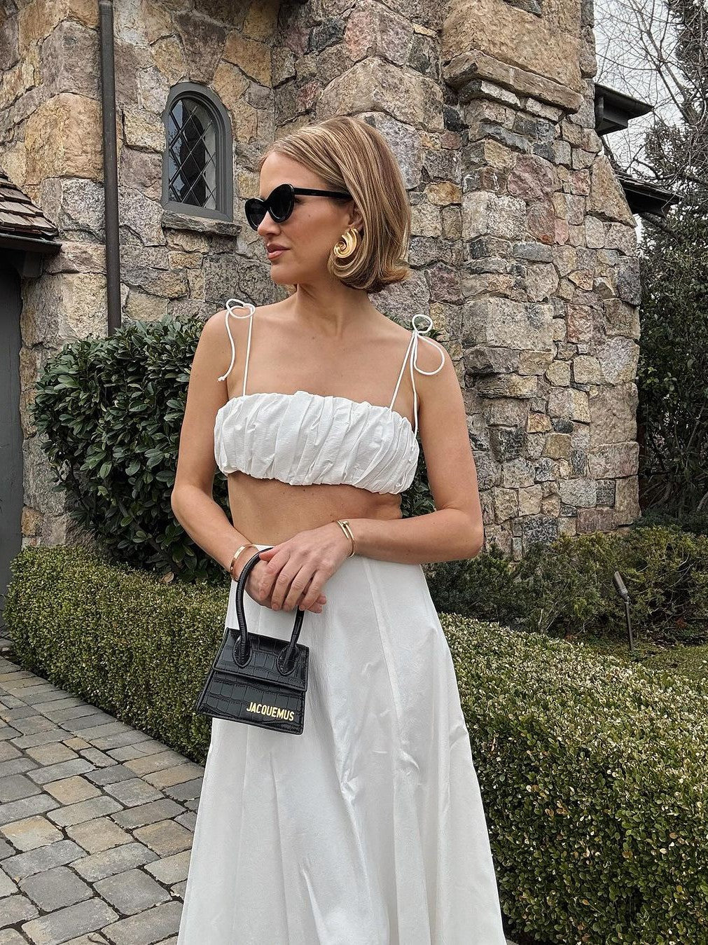 Ruffle Tied Spaghetti Strap Crop Top & Skirt Coord Set